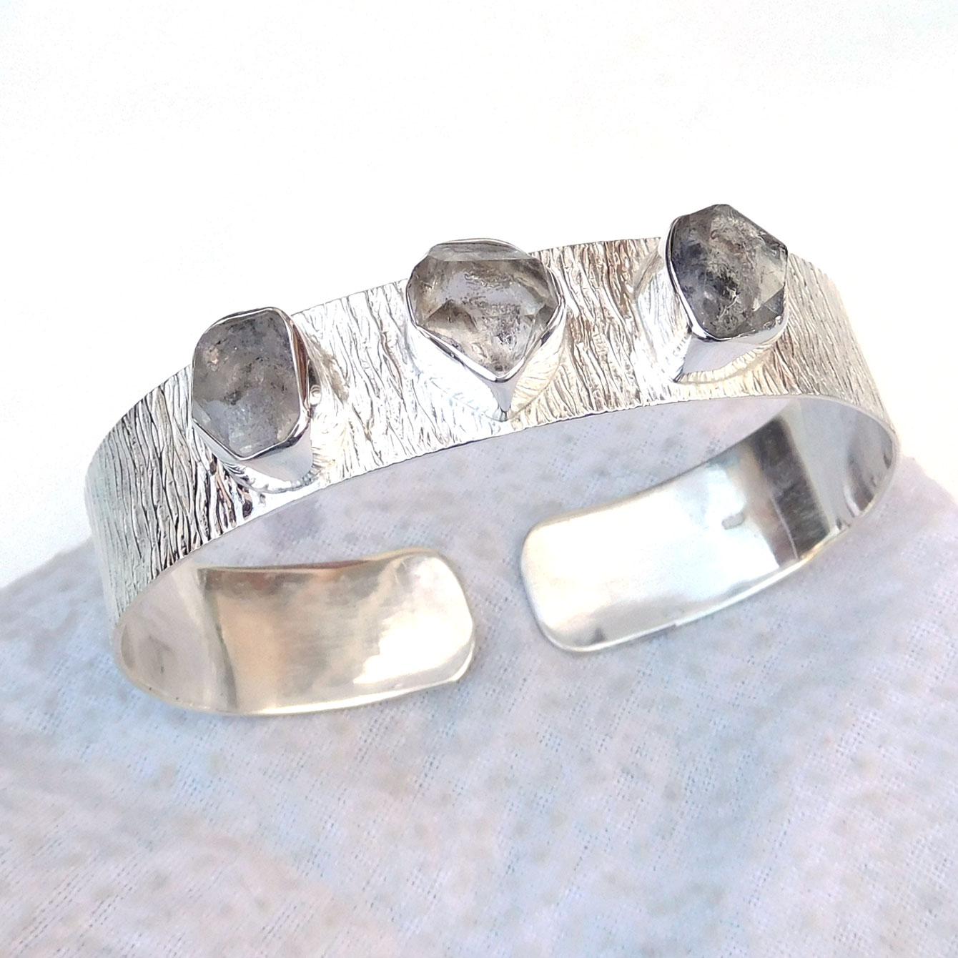 Natural Herkimer Diamond Cuff Bracelet 925 Sterling Silver Handmade-BN08