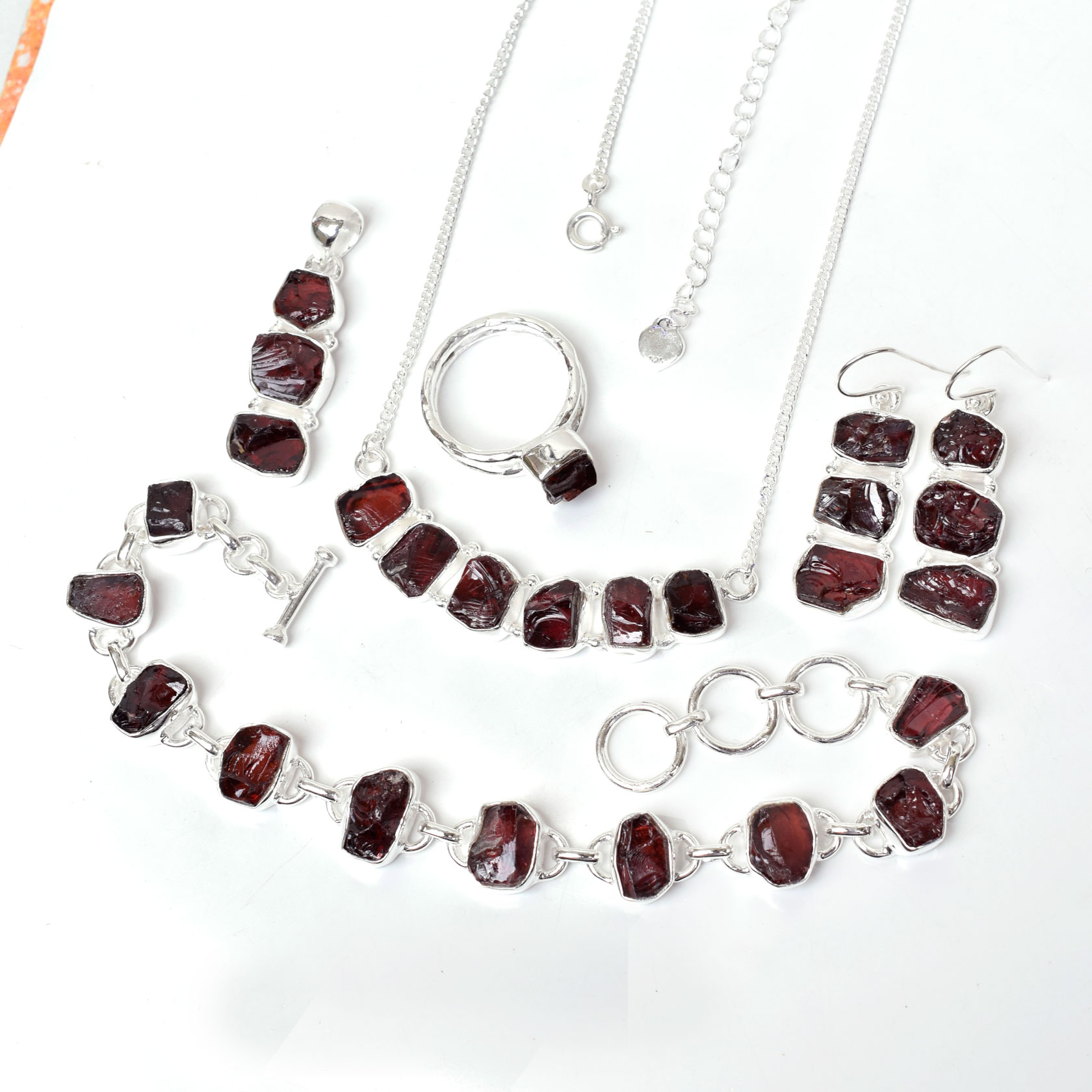 Natural Raw Garnet Jewelry Set 925 Sterling Silver Handmade Jewelry Set-SET06