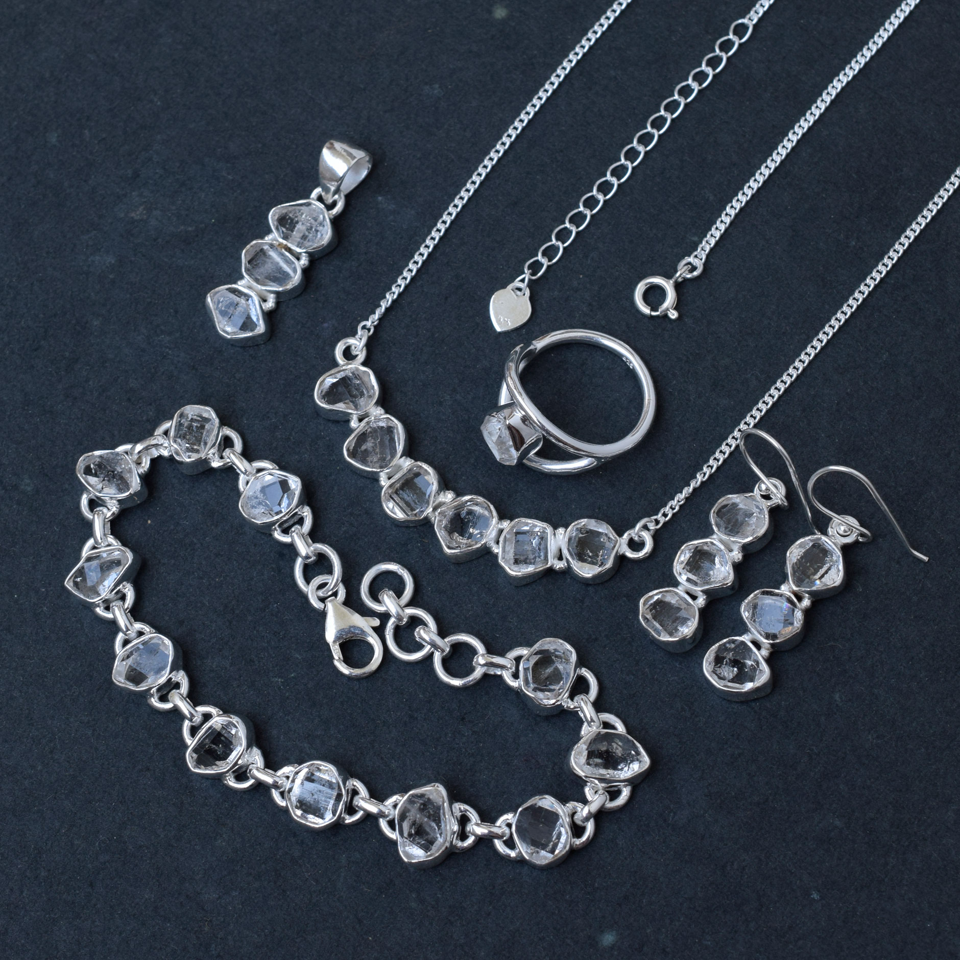 Herkimer Diamond Jewelry Set 925 Sterling Silver Diamond Crystal Jewelry-SET12