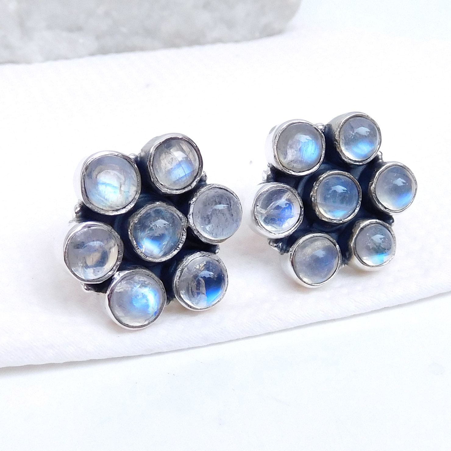 Natural Moonstone Stud Earring 925 Sterling Silver Rainbow moonstone Stud-ST18