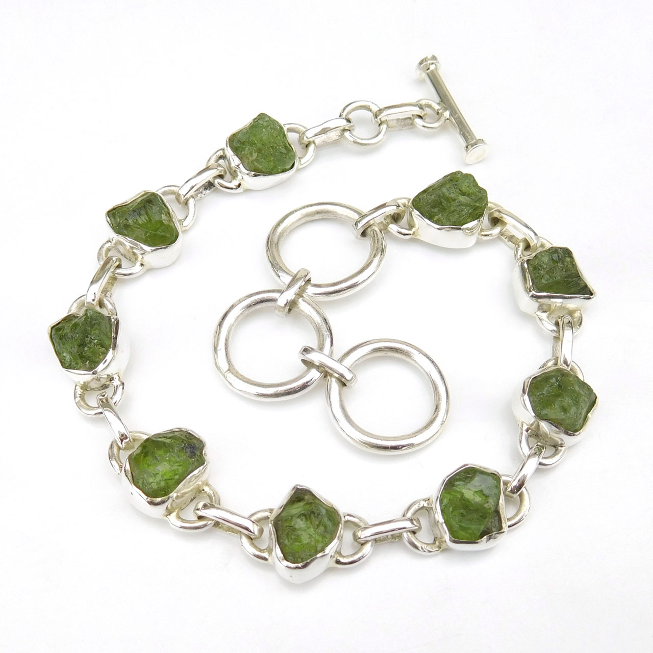 Natural Raw Peridot Bracelet, 925 Sterling Silver Handmade Peridot Bracelet-B02