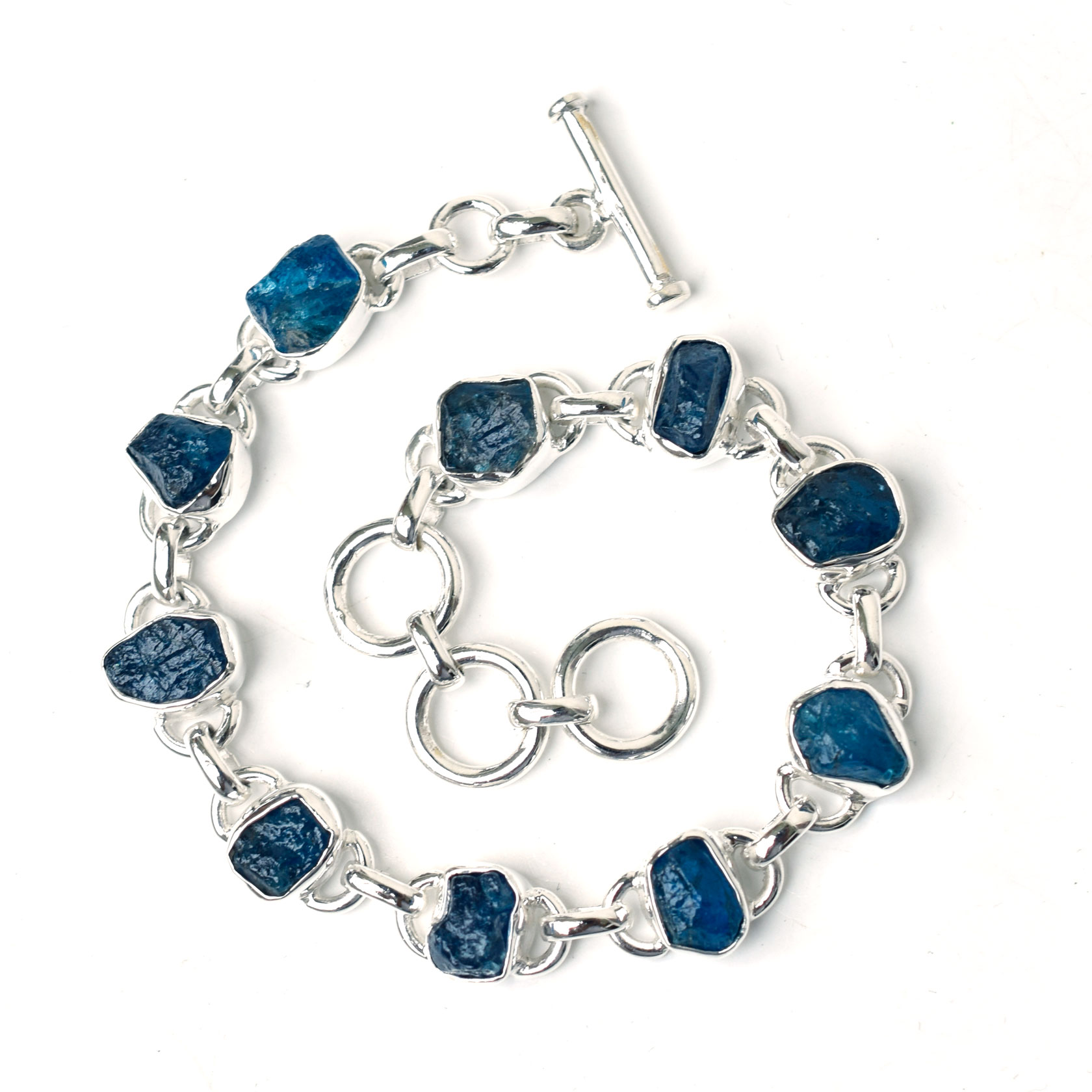 Natural Apatite Bracelet 925 Sterling Silver Raw Apatite Gemstone Bracelet-SB05