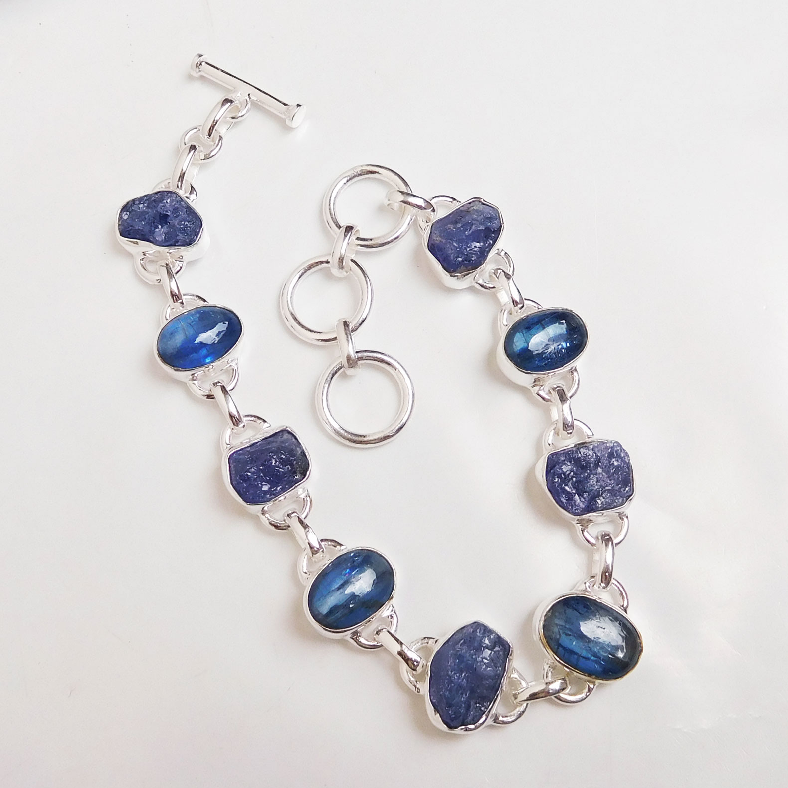 Natural Raw Tanzanite & Kyanite gemstone Bracelet 925 Sterling Silver-SB18