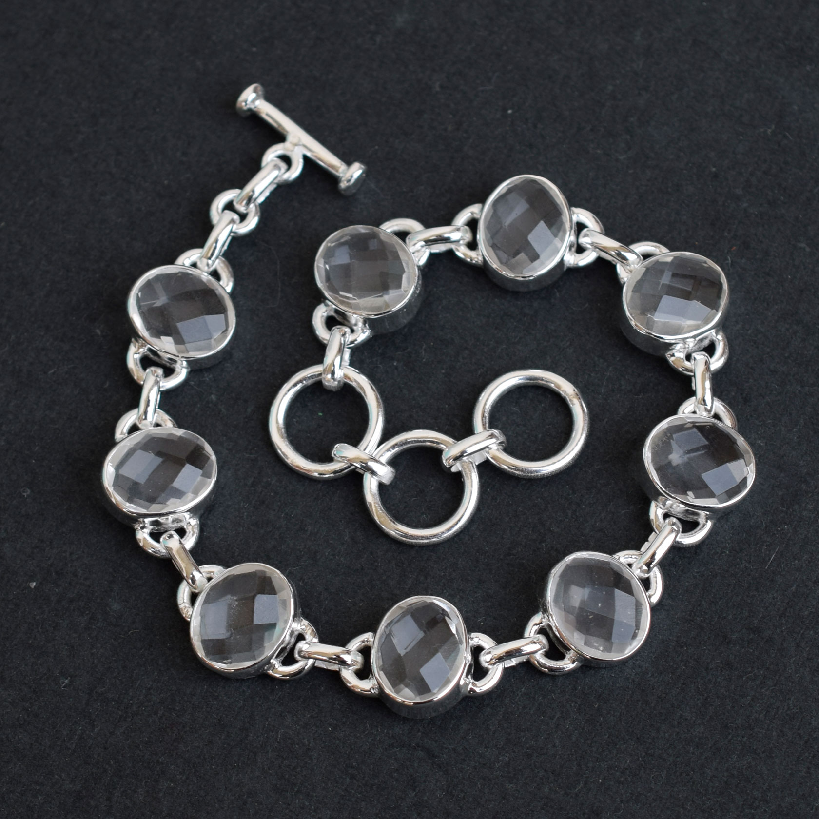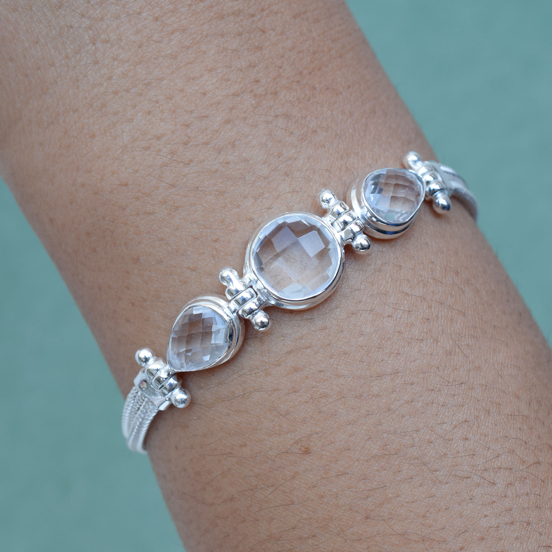 Natural Crystal quartz Bracelet 925 Sterling Silver Clear quartz Jewelry-SB29