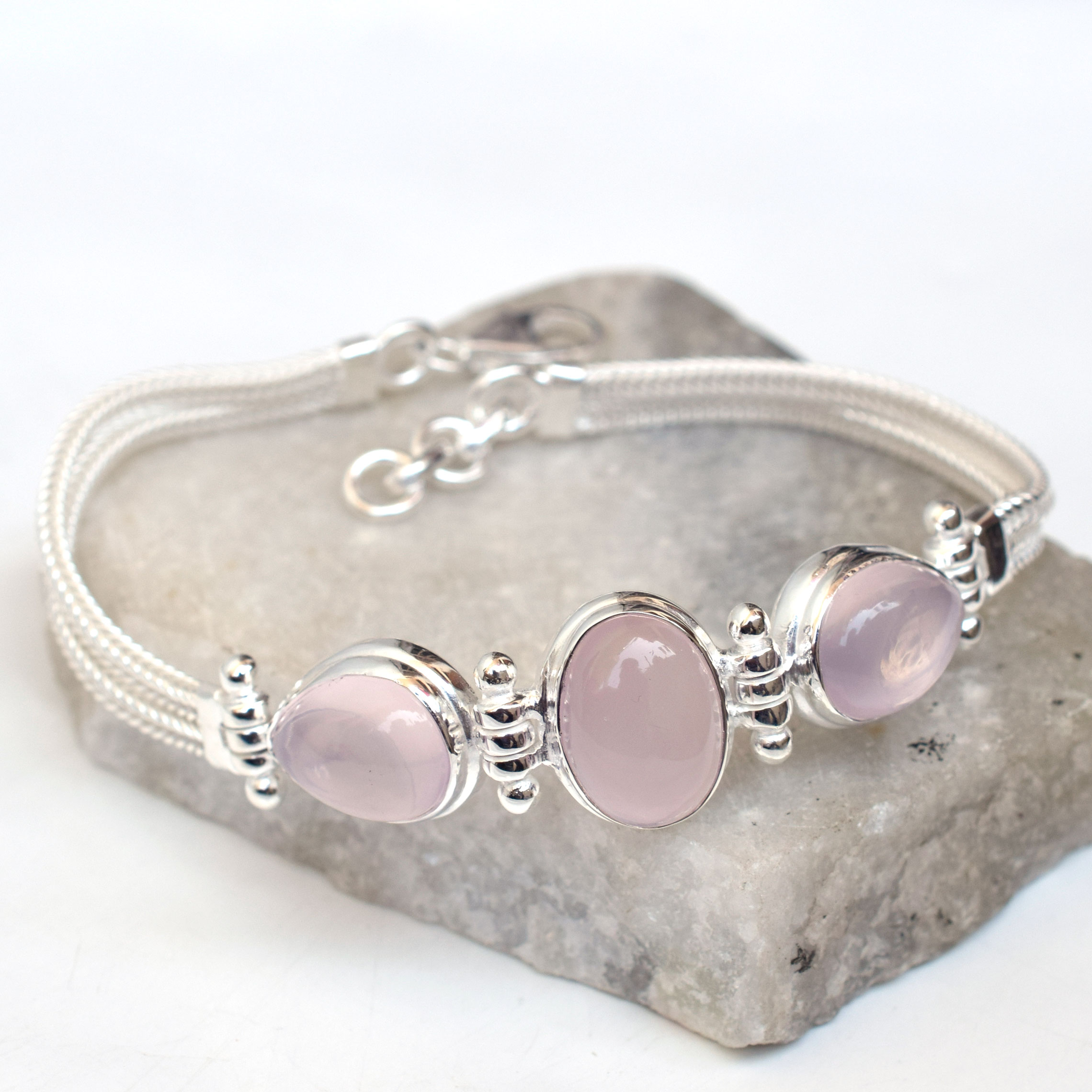 Natural Rose quartz Bracelet 925 Sterling Silver Pink Rose quartz Bracelet-SB036