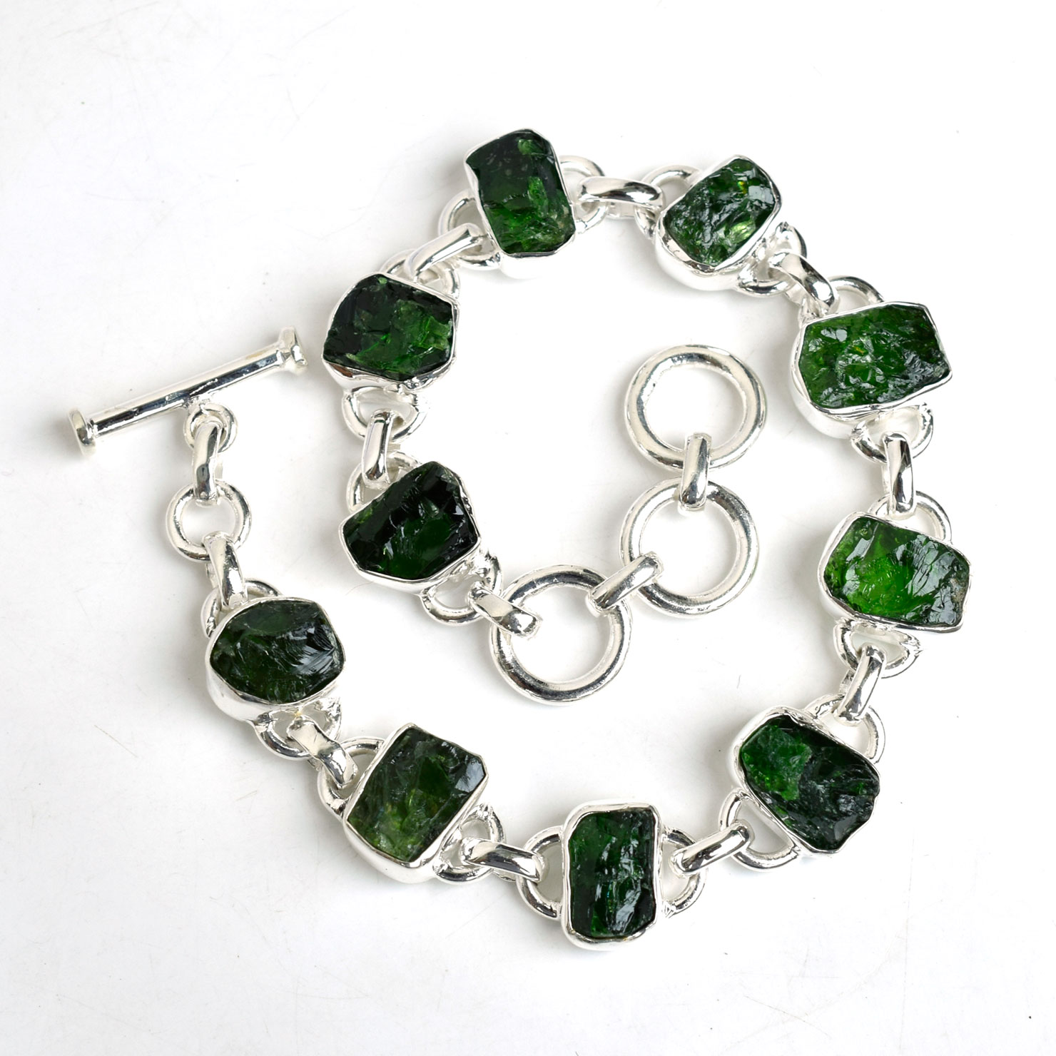 Natural Chrome Diopside gemstone Bracelet 925 Sterling Silver Jewelry-SB08