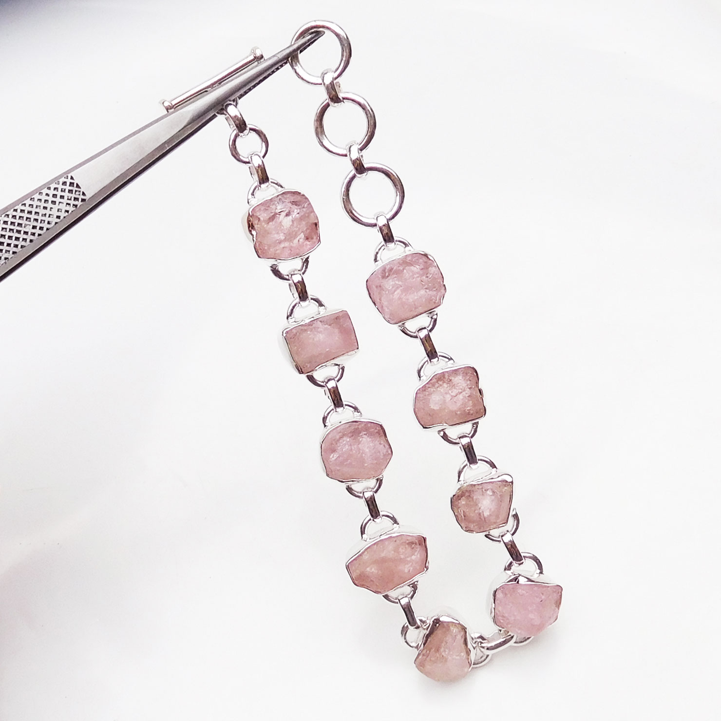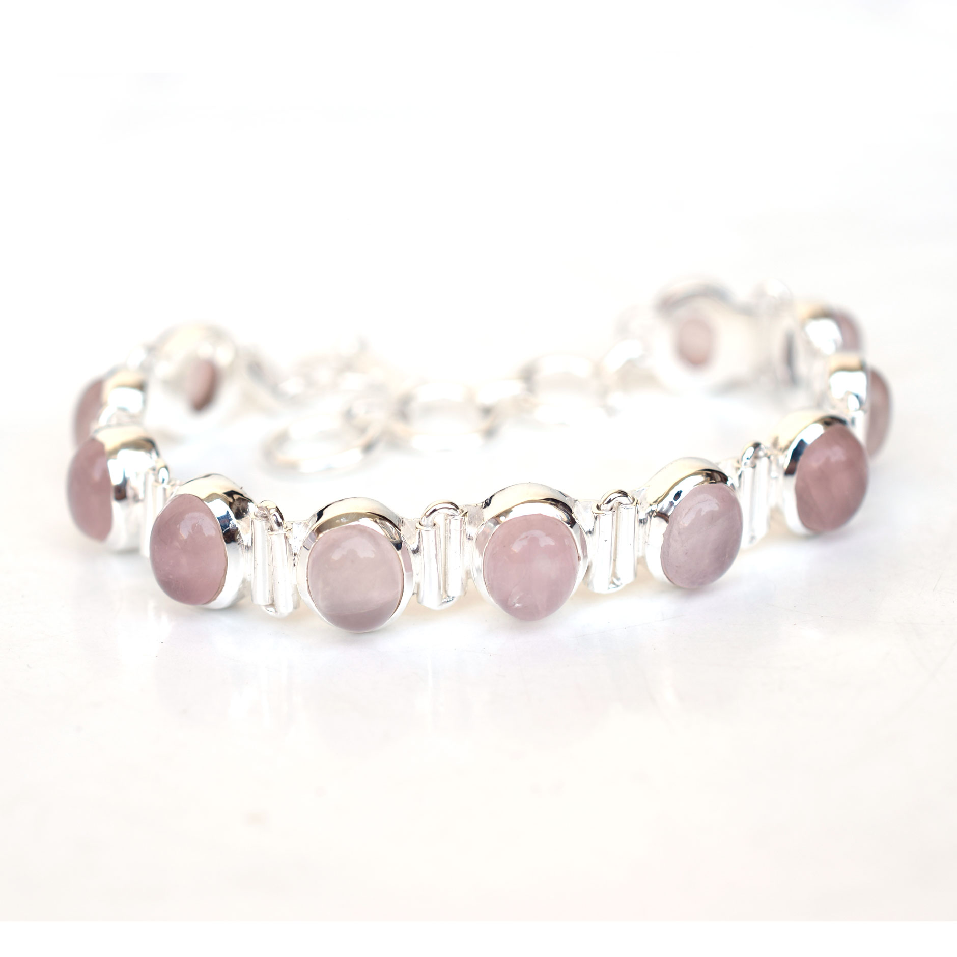 Natural Rose quartz Bracelet 925 Sterling Silver Rose quartz Bracelet-SB038