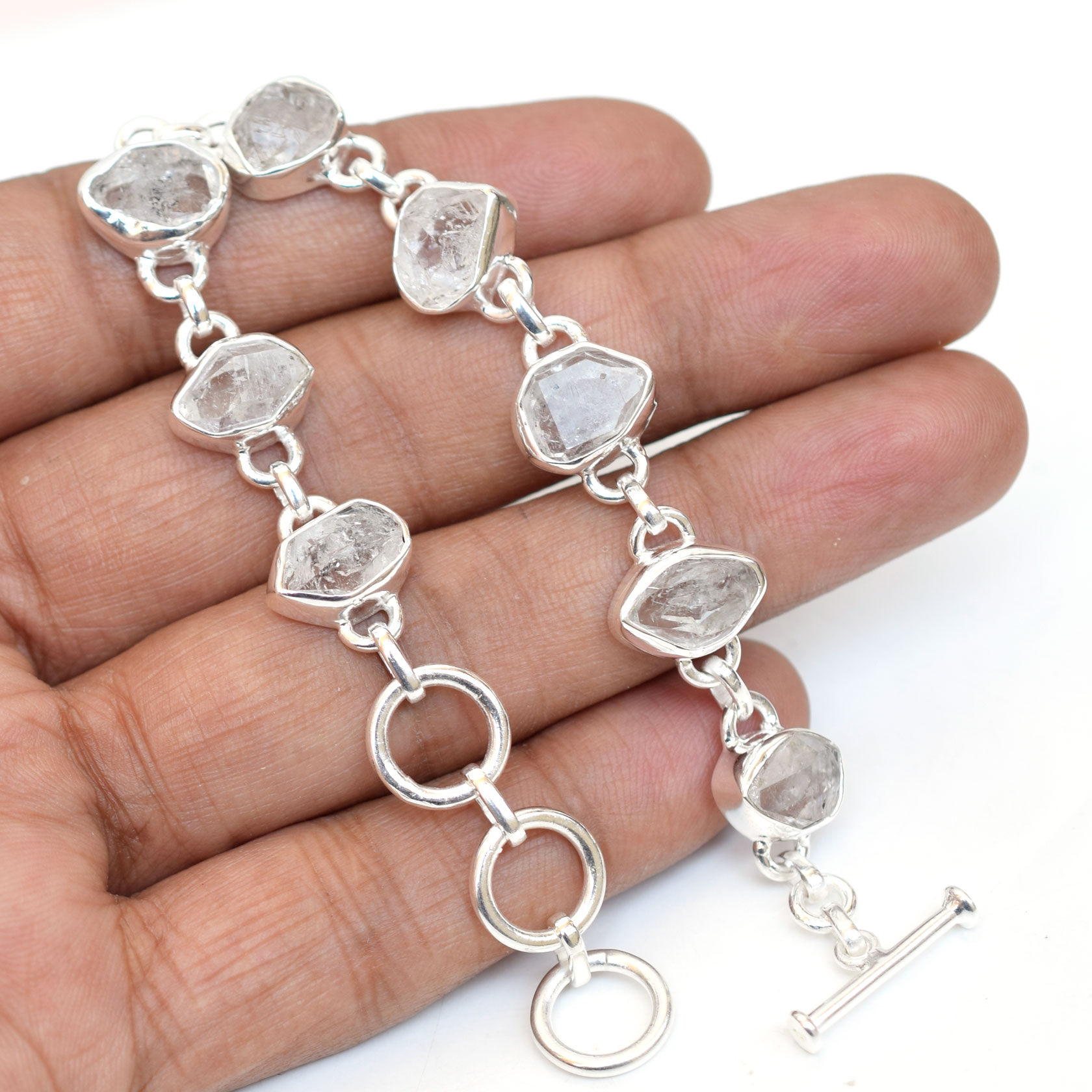 Natural Herkimer Diamond Crystal Bracelet 925 Sterling Silver-SB10