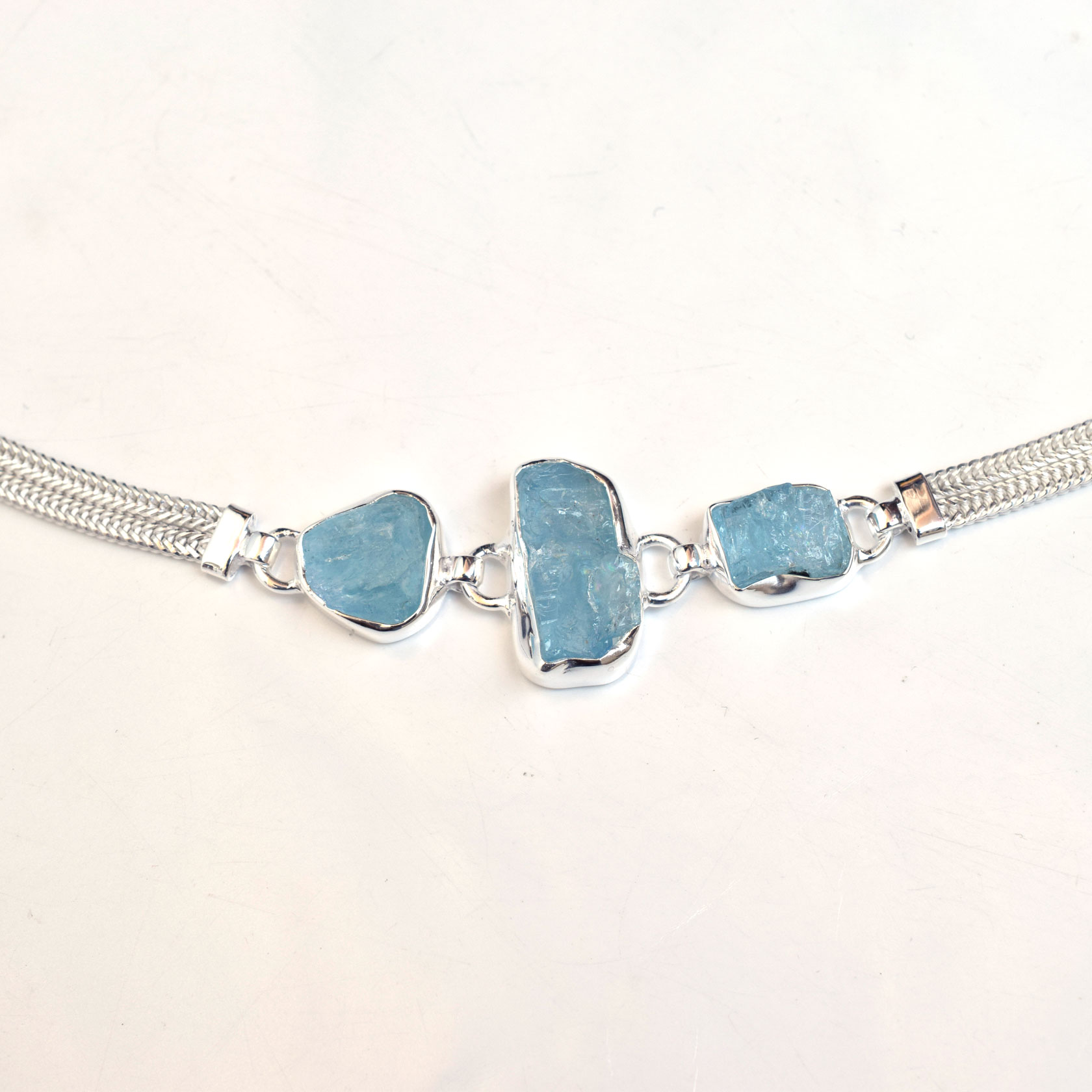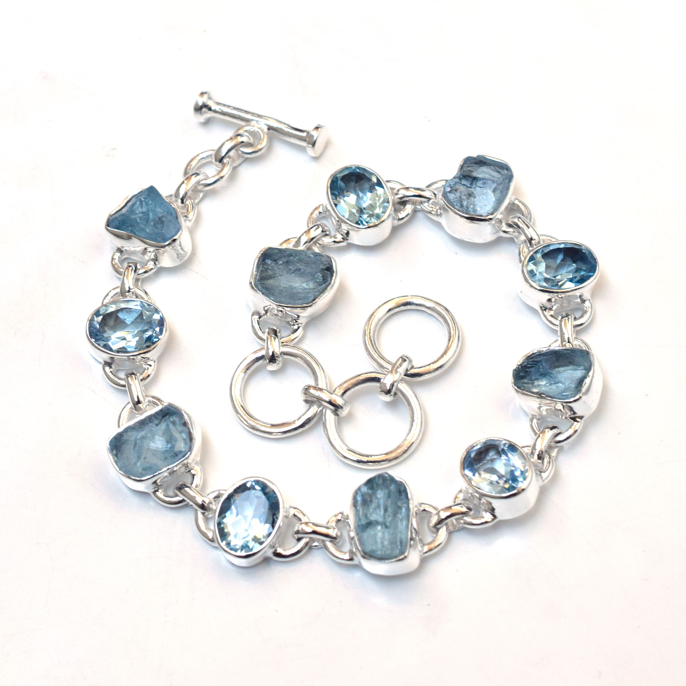 Natural Raw Aquamarine & Blue Topaz Bracelet 925 Sterling Silver Bracelet-SB053