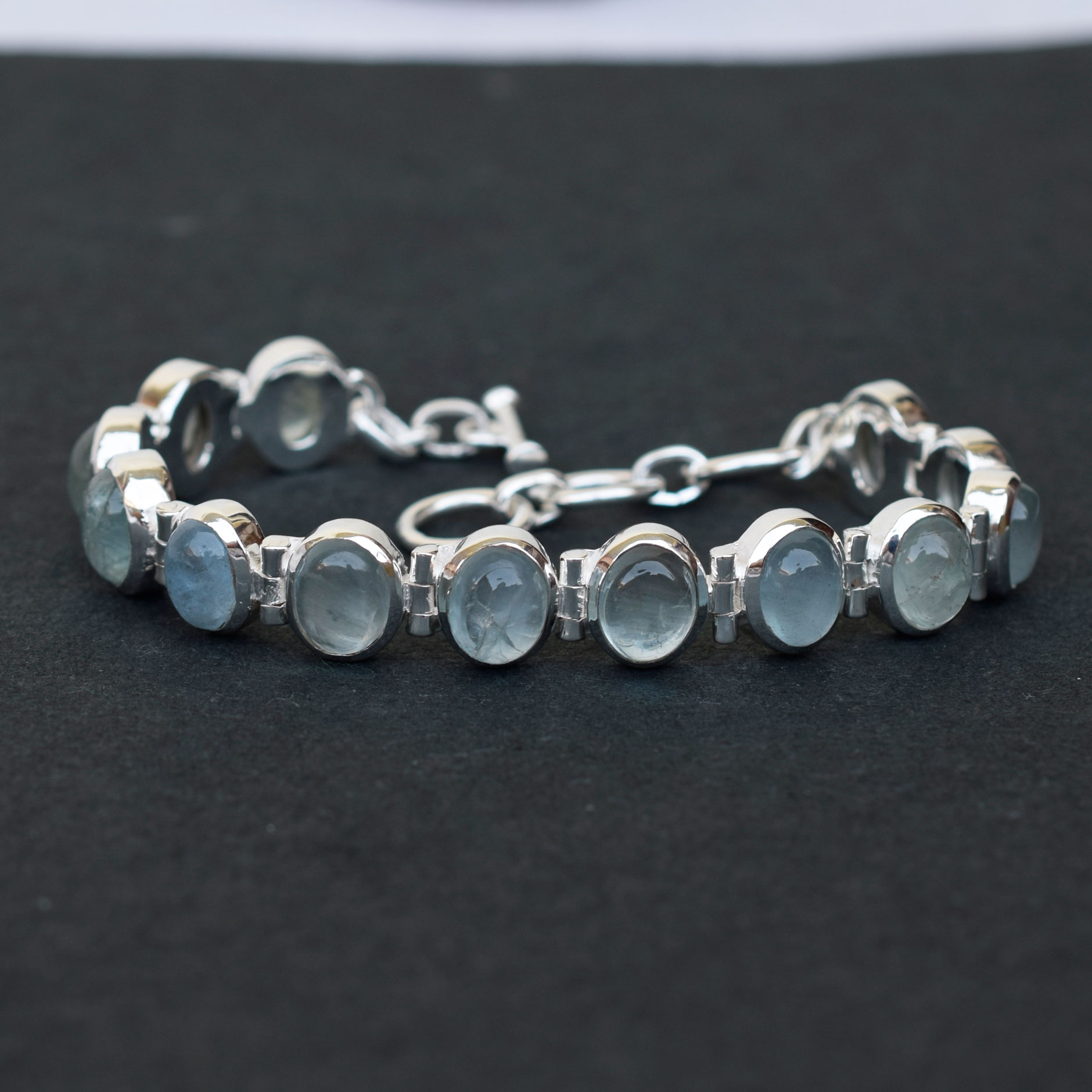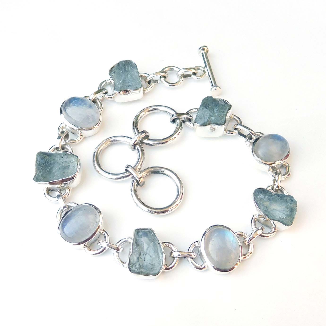 Natural Aquamarine &Moonstone Bracelet 925 Sterling Silver Handmade-SB20