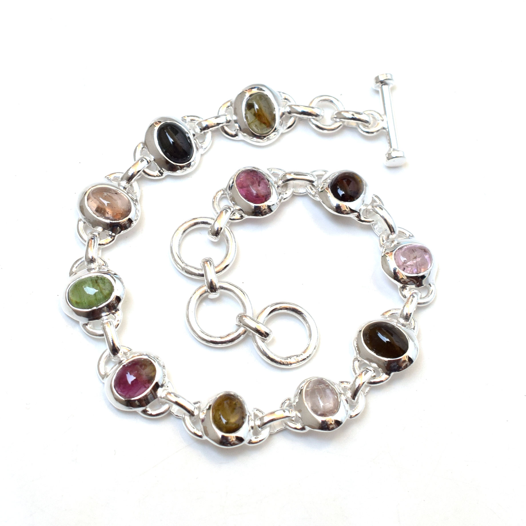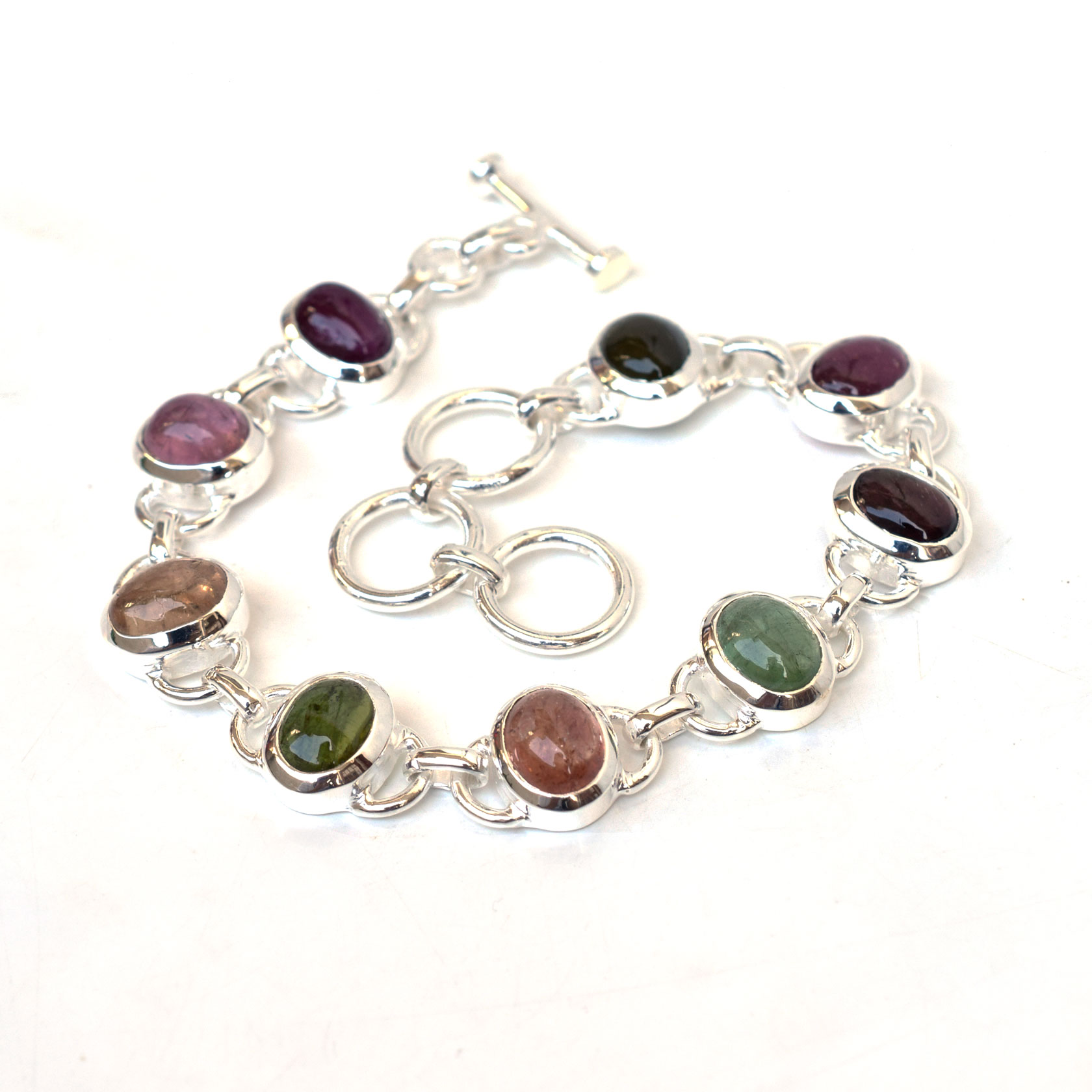 Natural Multi Color Tourmaline Bracelet 925 Sterling Silver Tourmaline-SB23
