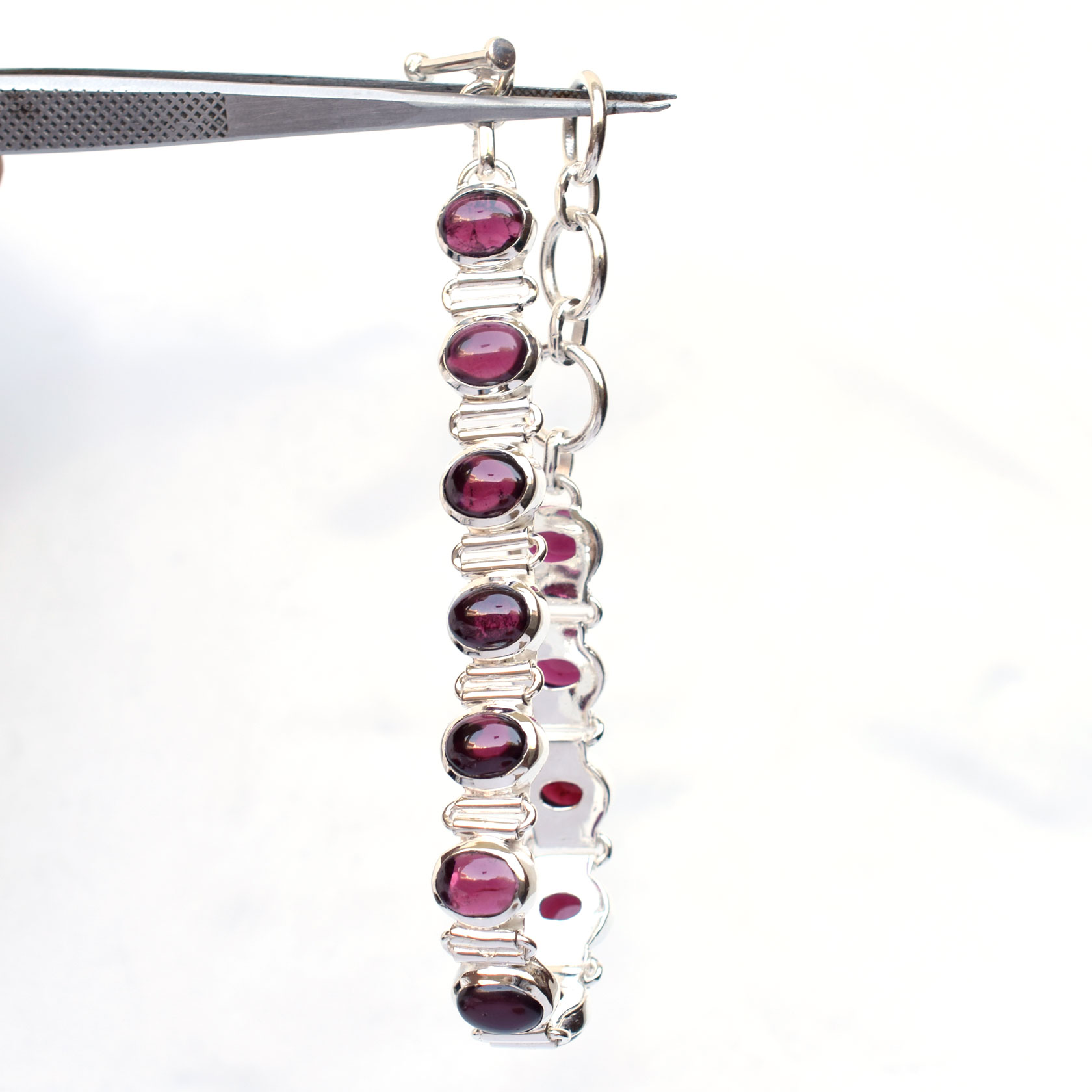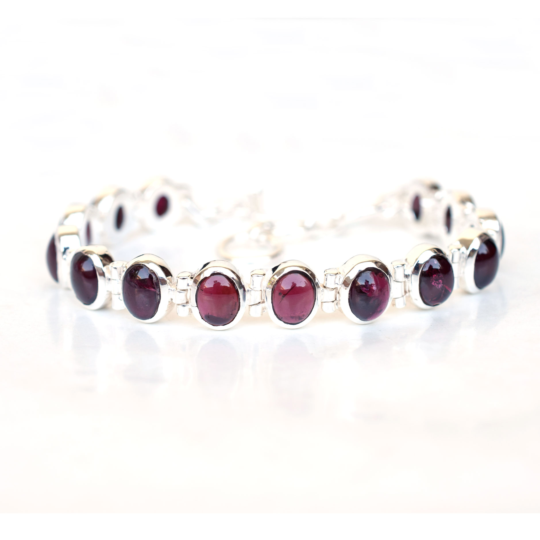 Granet Bracelet 925 Sterling Silver Red Garnet Bracelet Handmade-SB033