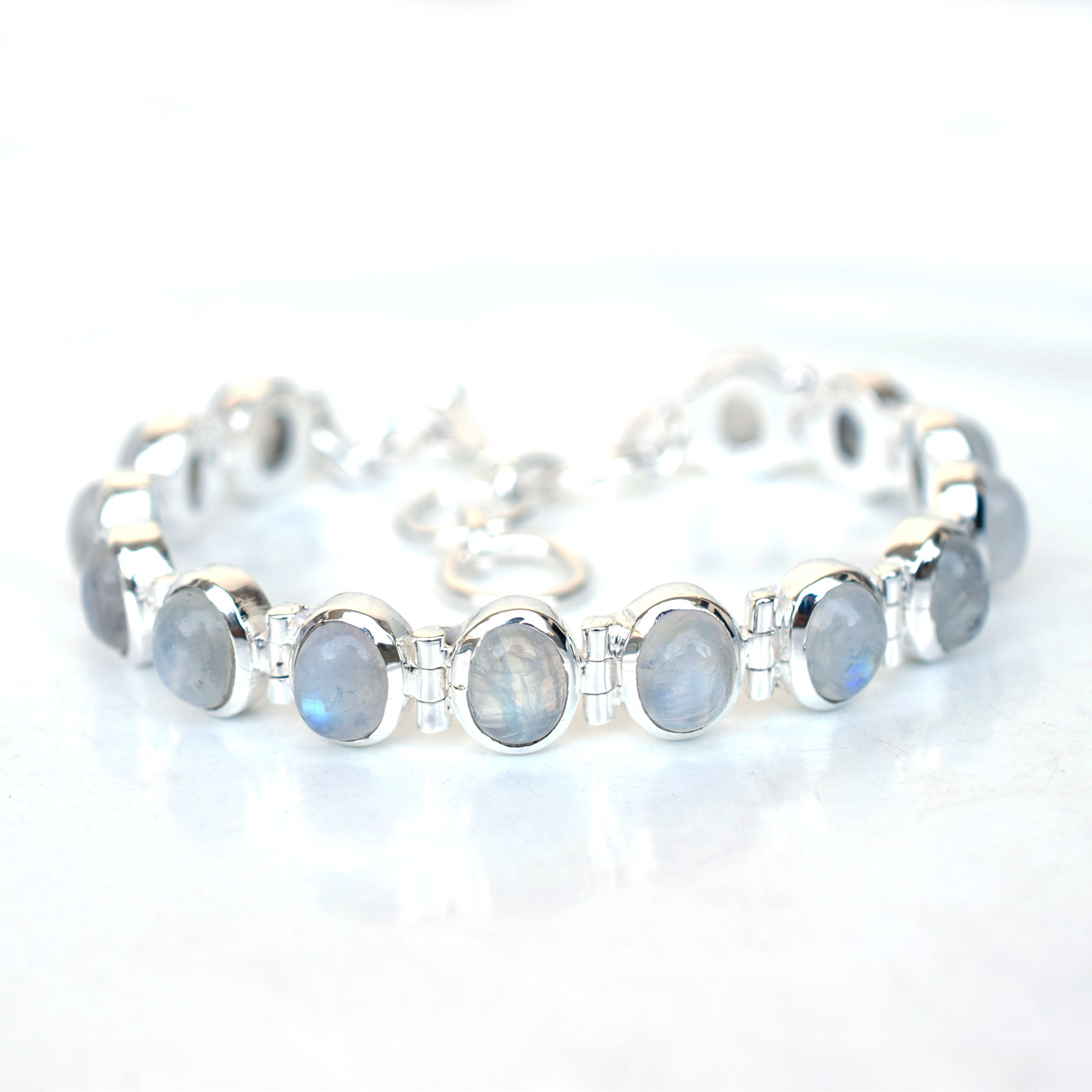 Rainbow moonstone Bracelet 925 Sterling Silver Moonstone Bracelet-SB035