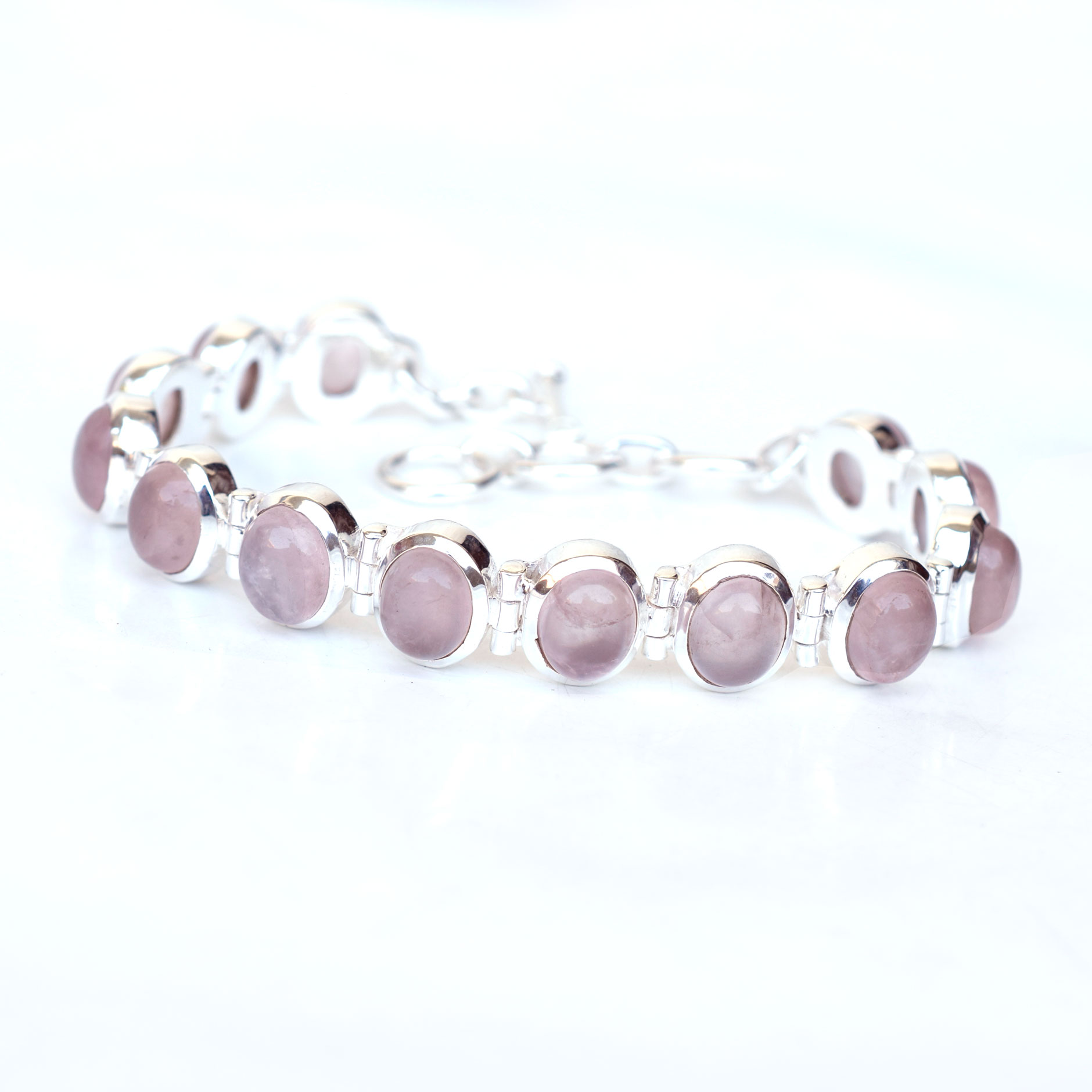 Natural Rose quartz Bracelet 925 Sterling Silver Pink Rose quartz Jewelry-SB050