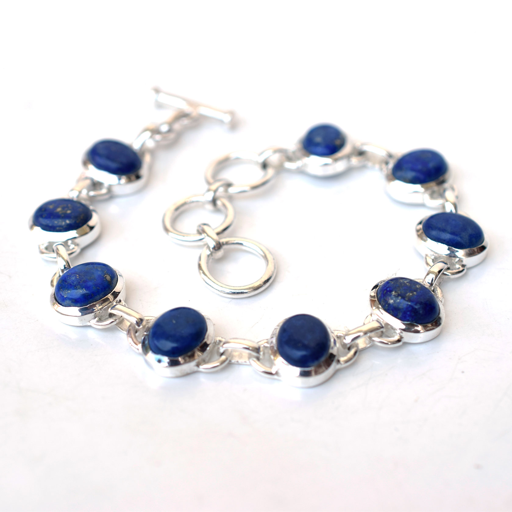 Natural Lapis Lazuli Bracelet 925 Sterling Silver Blue Lapis Jewelry-SB039