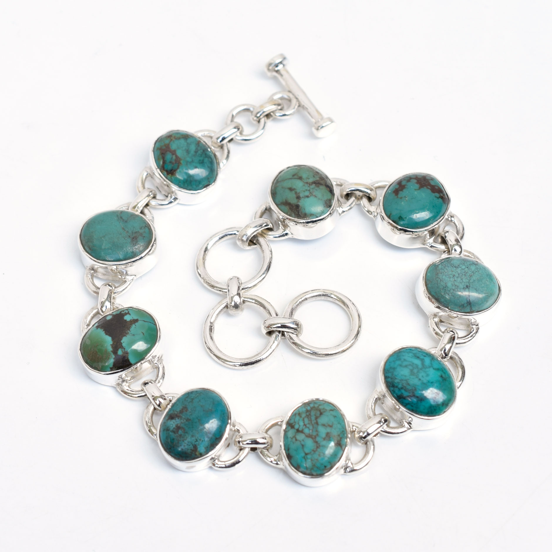 Natural Tibet Turquoise Bracelet 925 Sterling Silver Turquoise Jewelry-SB045