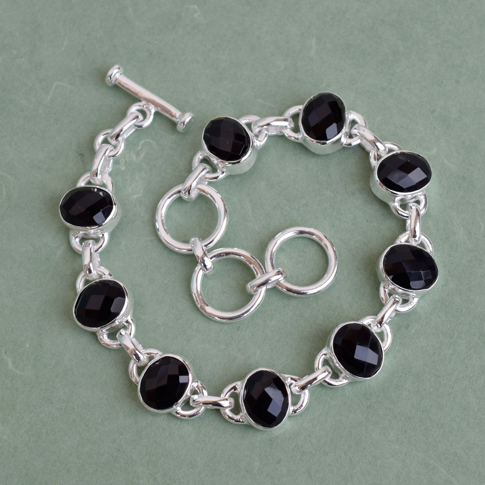 Black Onyx Bracelet 925 Sterling Silver Black onyx Jewelry Handmade-SB048