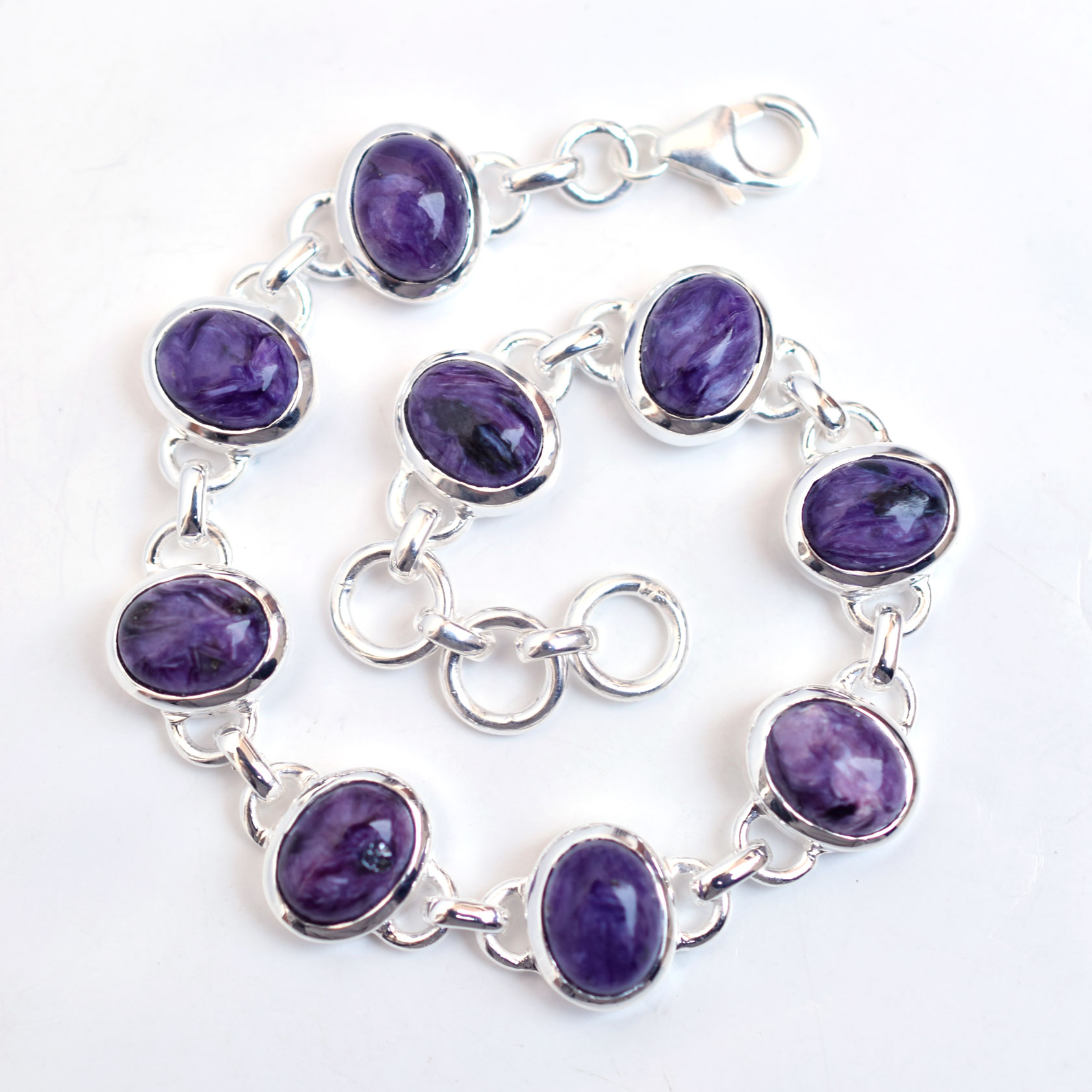 Natural Charoite Bracelet 925 Sterling Silver Charoite Gemstone Jewelry-SB045