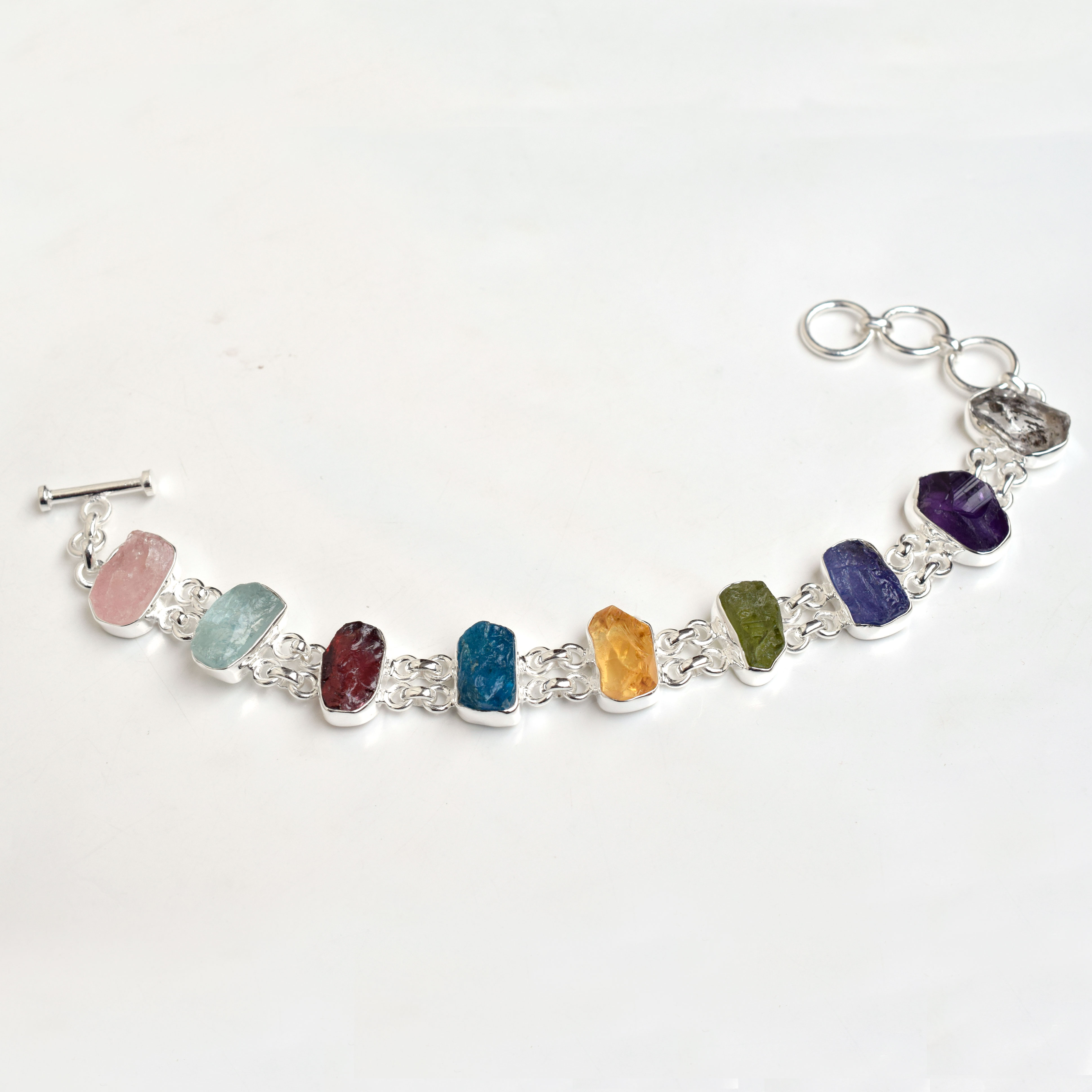 Handmade 925 Sterling Silver Bracelet Natural Multi Raw gemstone Bracelet-SB15