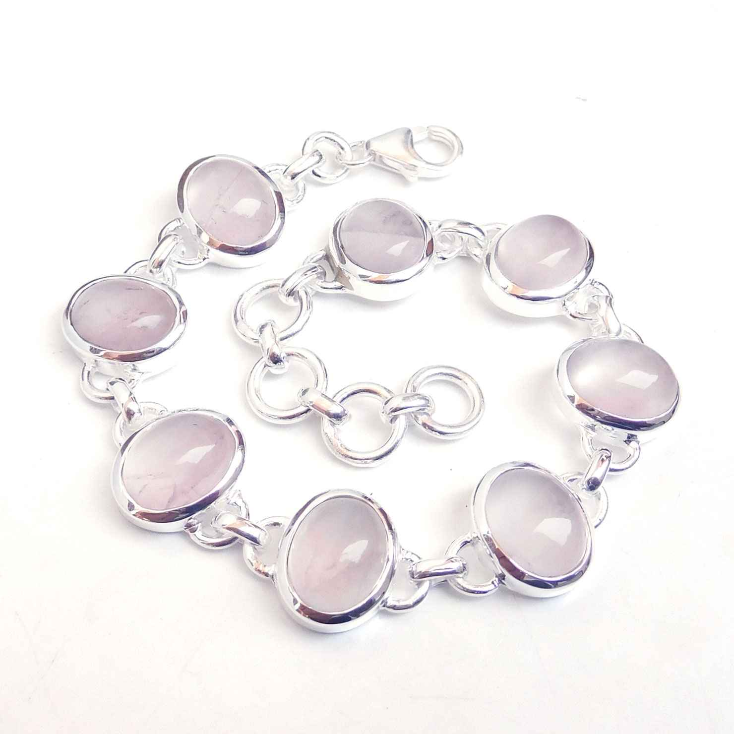 Natural Rose quartz Bracelet Solid 925 Sterling Silver wholesale Bracelet-SB30