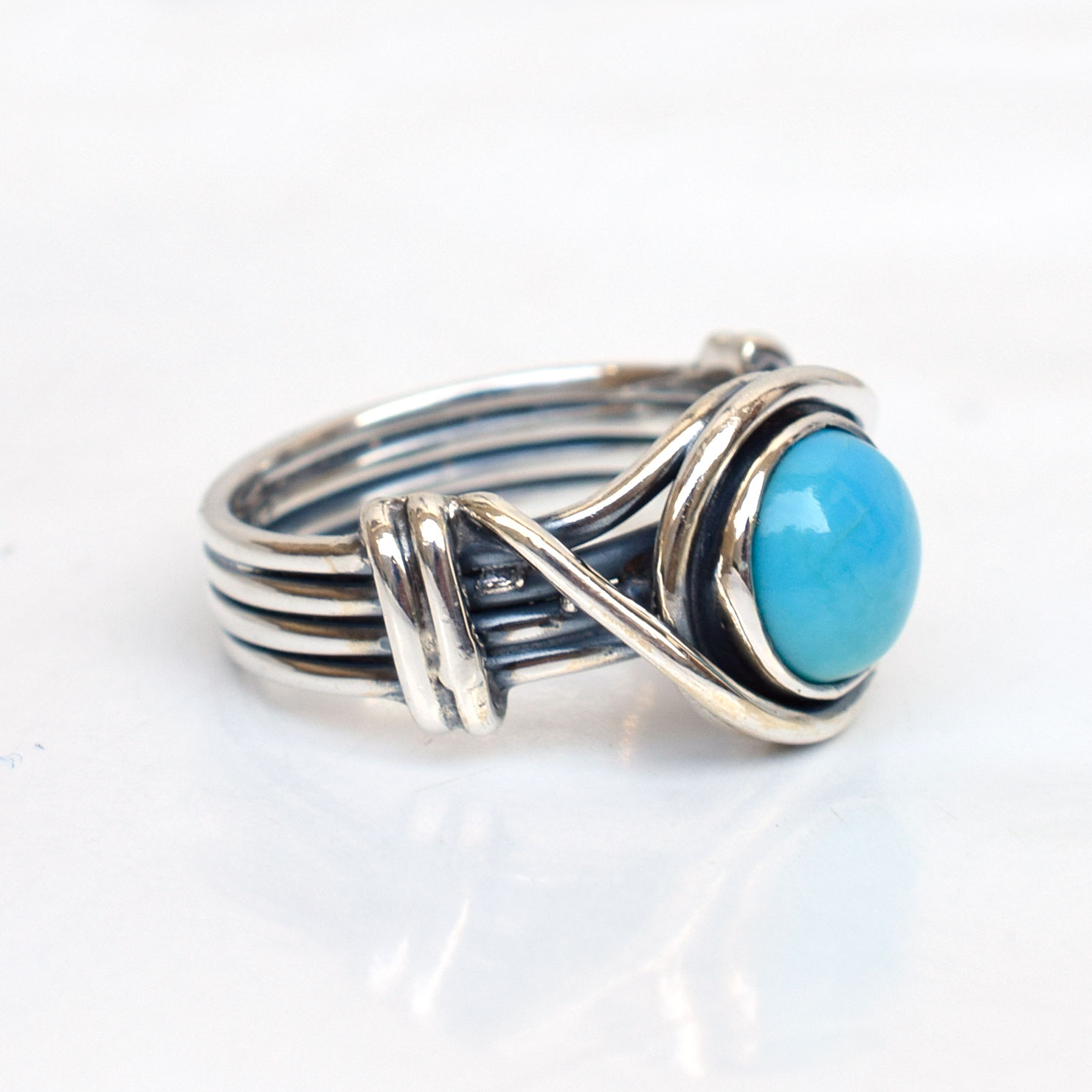Natural Raw Sleeping Beauty Turquoise Ring Raw Arizona Turquoise Ring-SR449