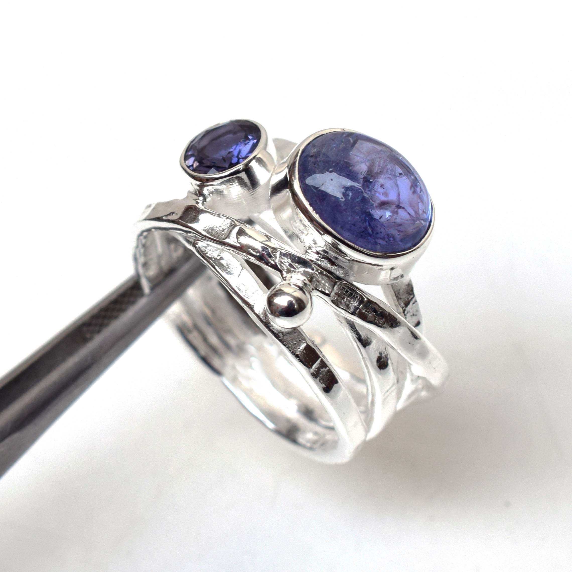 Natural Tanzanite Ring 925 Sterling Silver Tanzanite Jewelry Hammered Ring-SR368