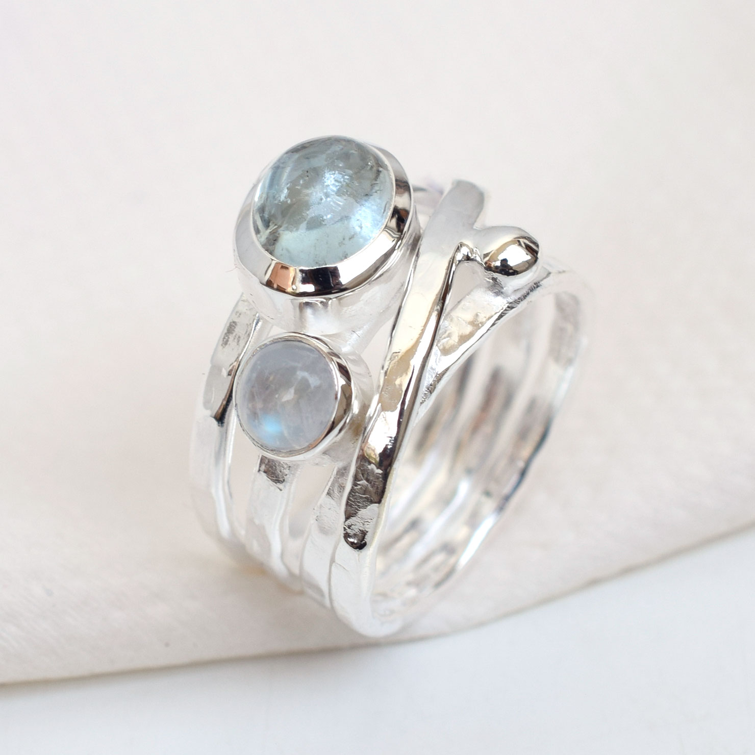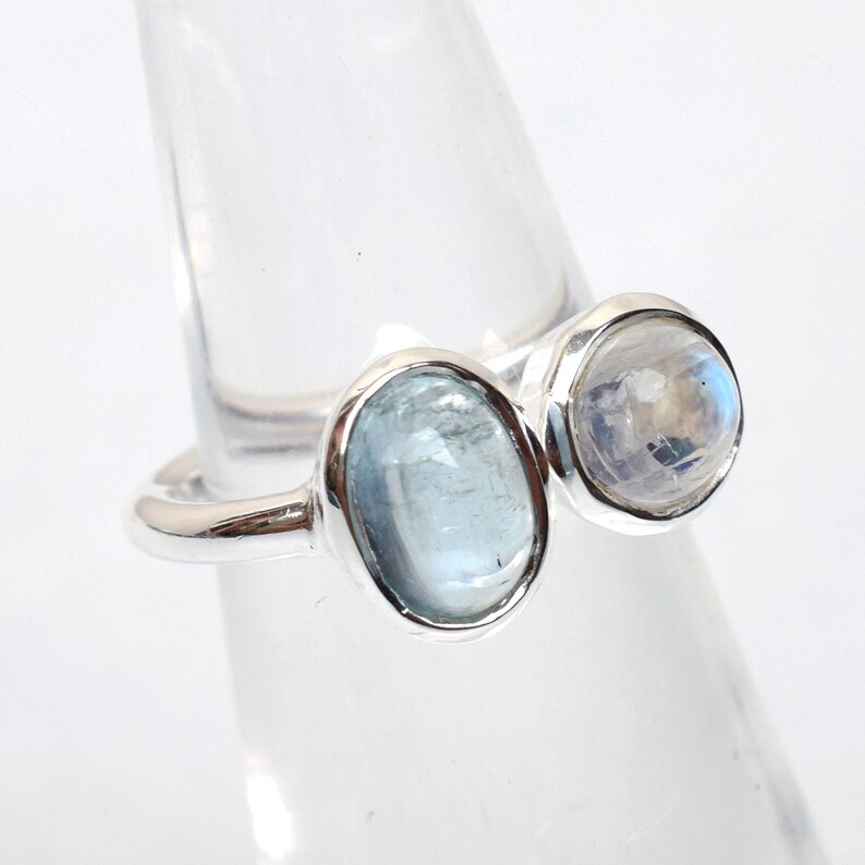 Natural Aquamarine & Moonstone Ring Adjustable Ring Handmade Ring-SR420