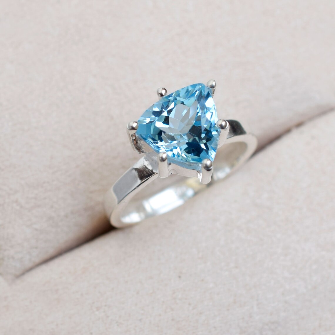 Trillion Ring Blue Topaz Ring 925 Sterling Silver Prong Ring Gift Topaz-SR370