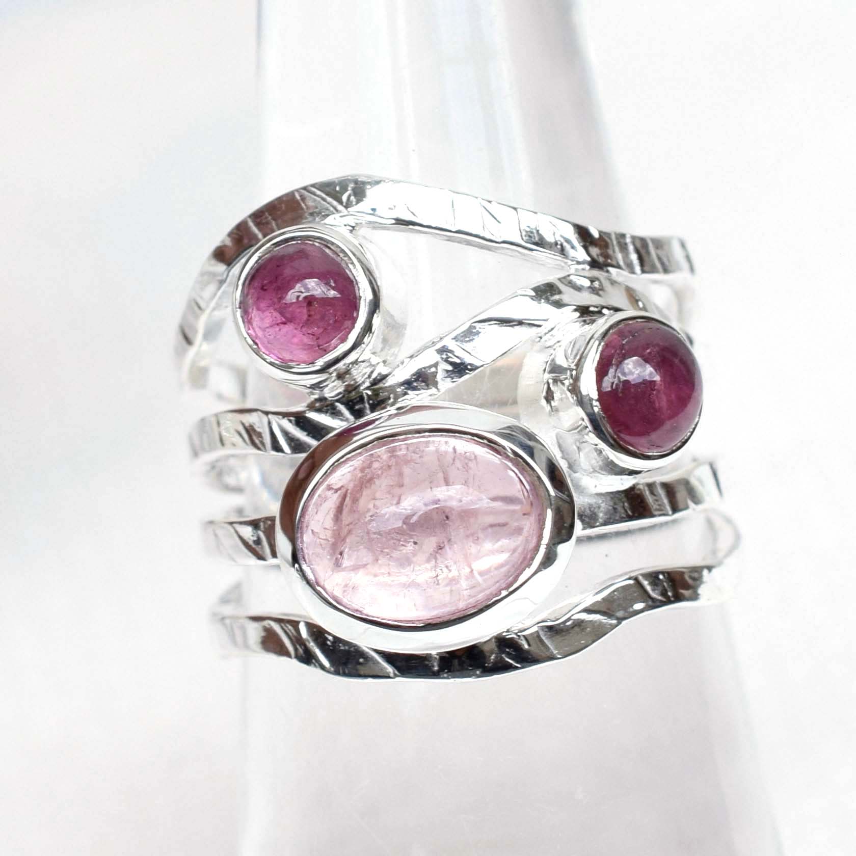 Natural Morganite & Pink Tourmaline Ring 925 Sterling Silver Handmade Ring-SR371