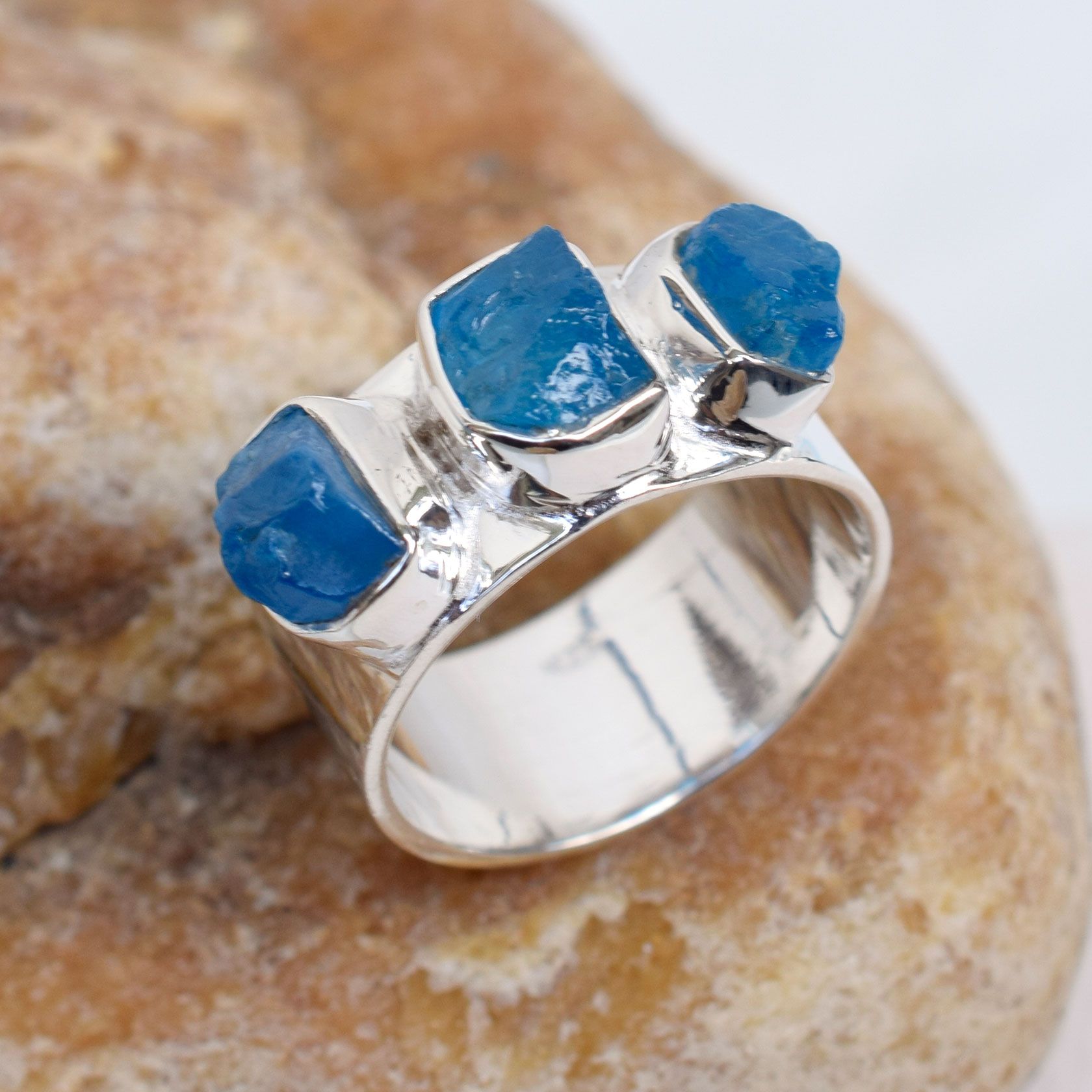 Neon Apatite Ring Natural Raw Apatite Crystal Ring 925 Sterling Silver-SR384