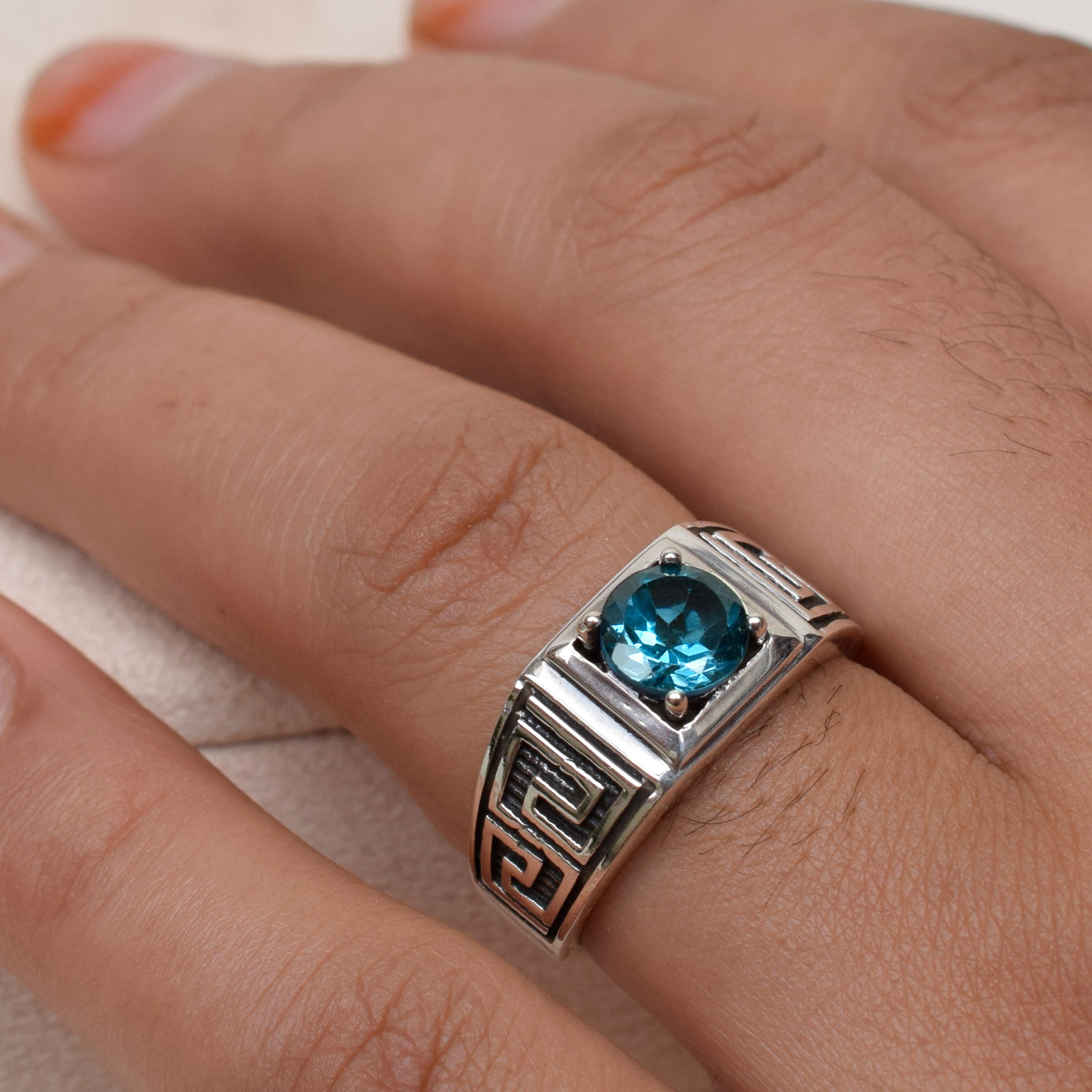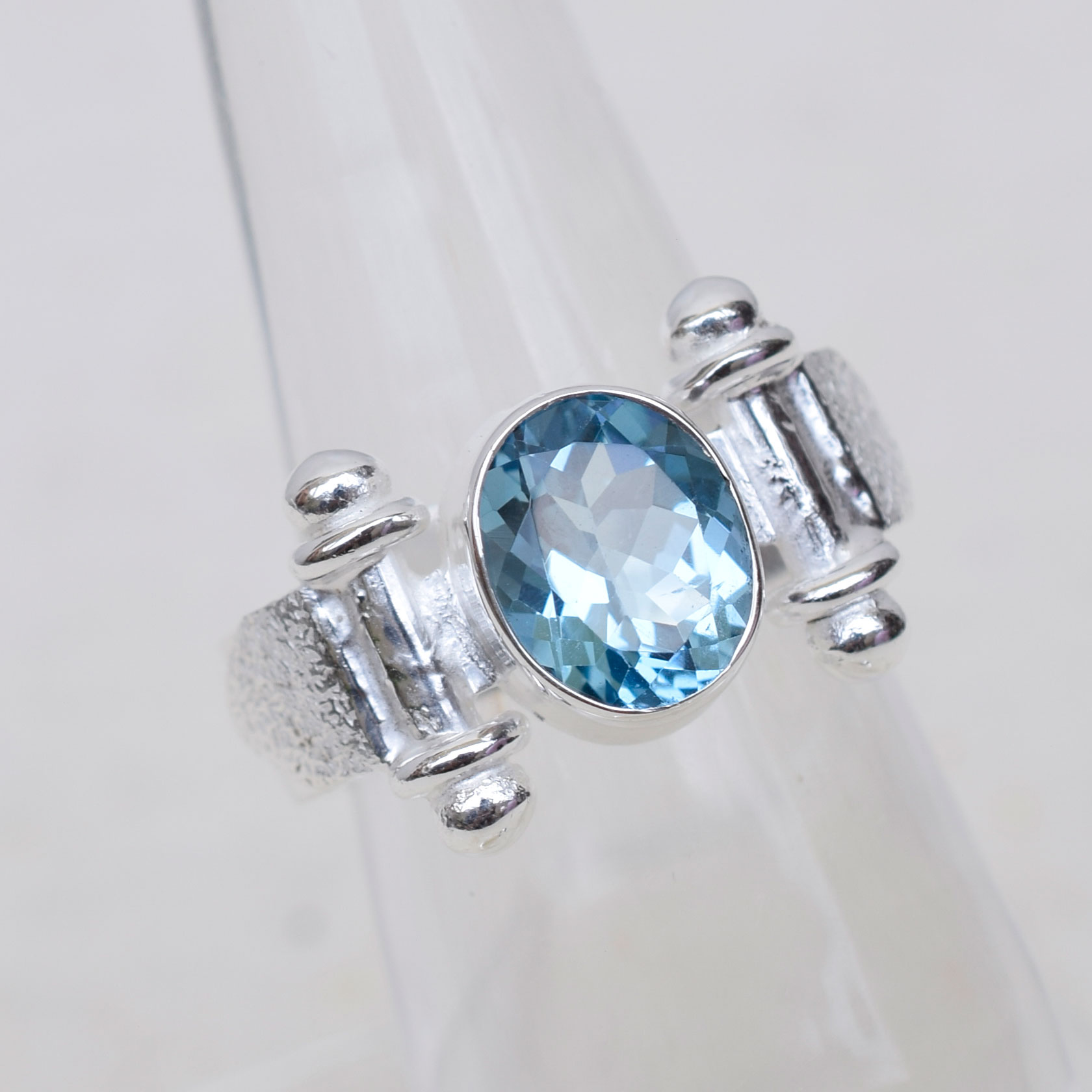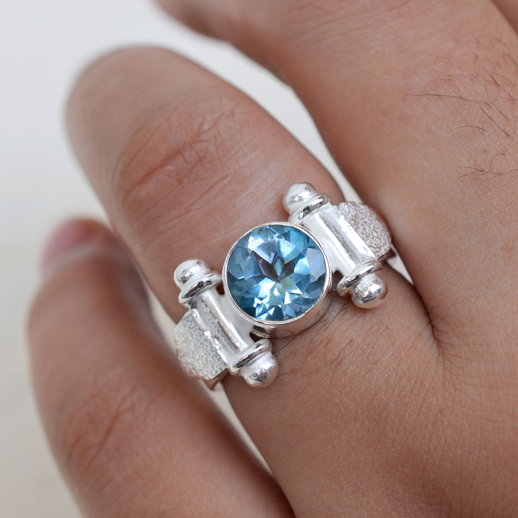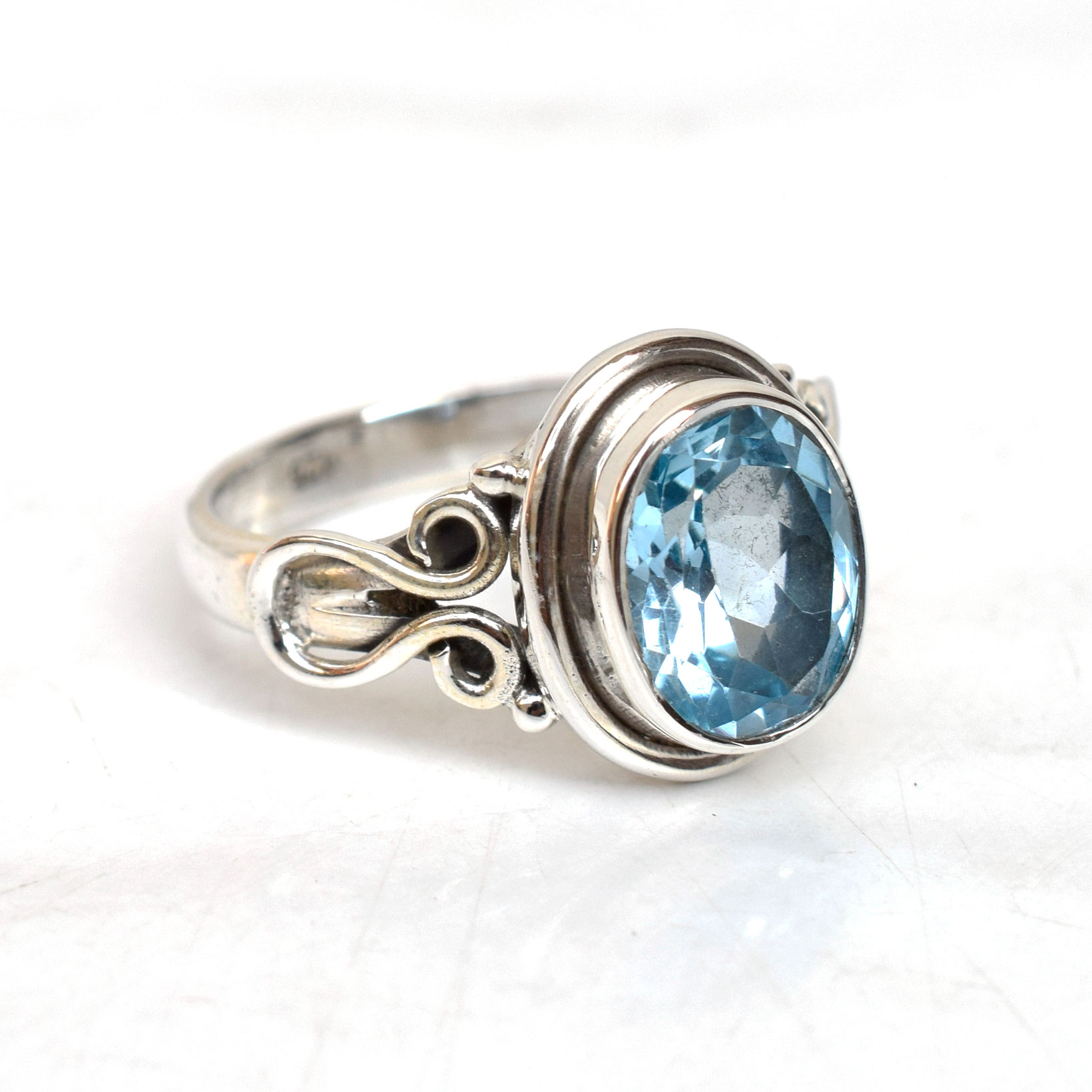 Natural Blue Topaz Ring 925 Sterling Silver Topaz Ring Handmade-SR416
