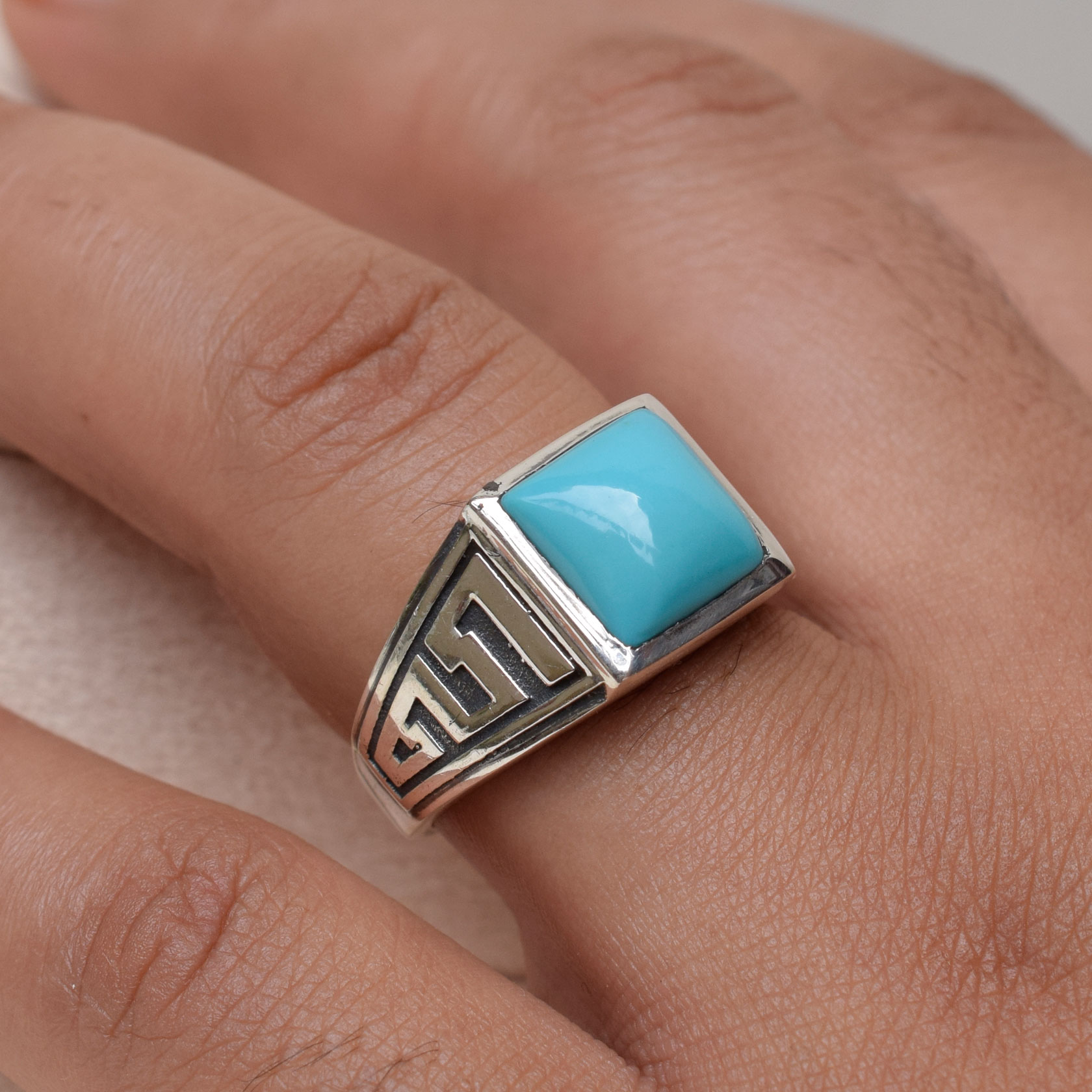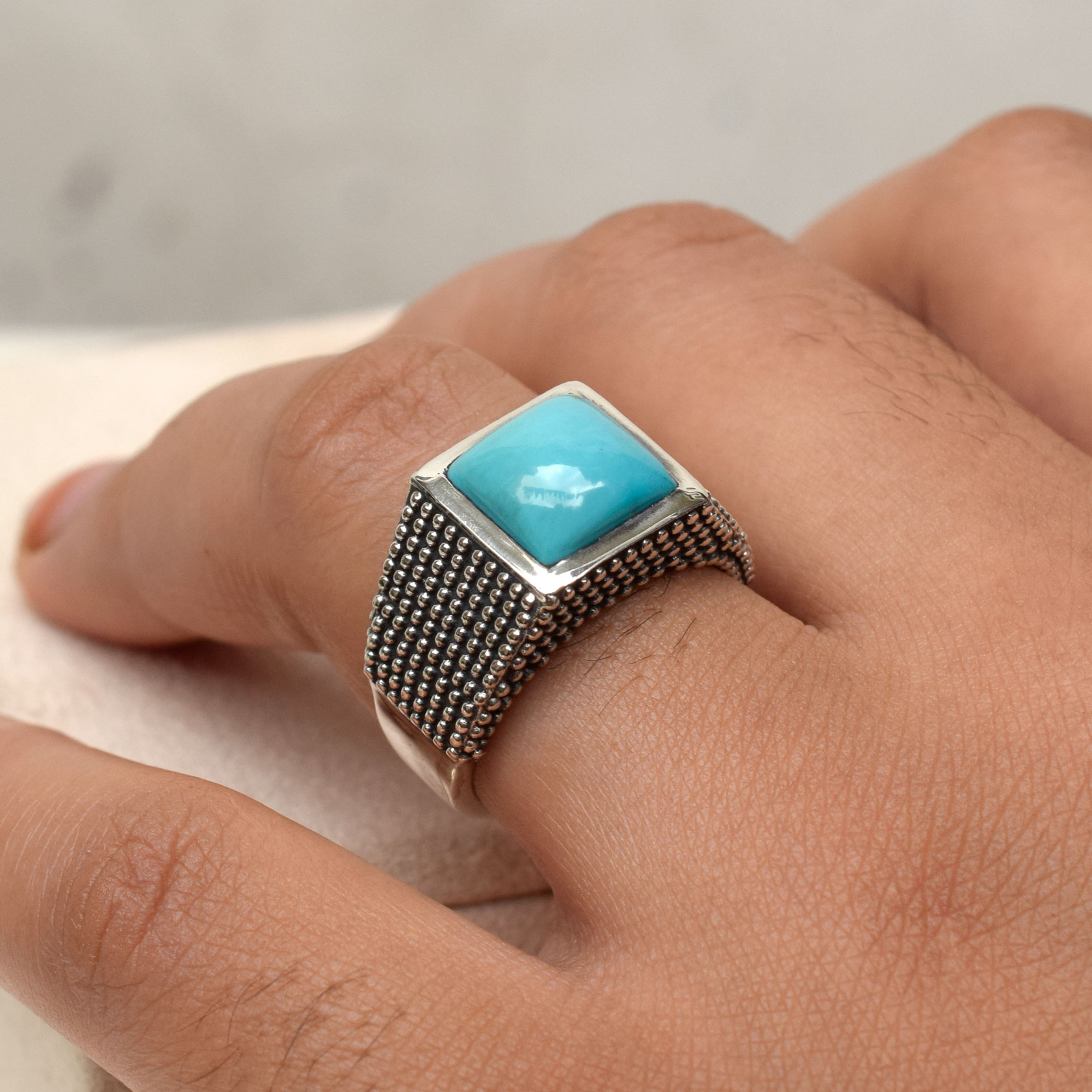 Mens Turquoise Ring Sleeping Beauty Turquoise Ring 925 Sterling Silver-SR425