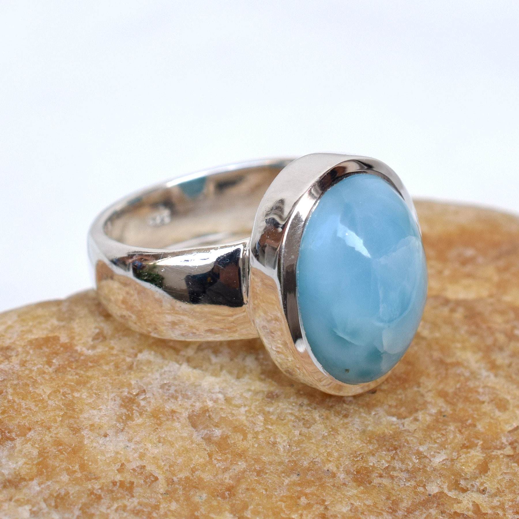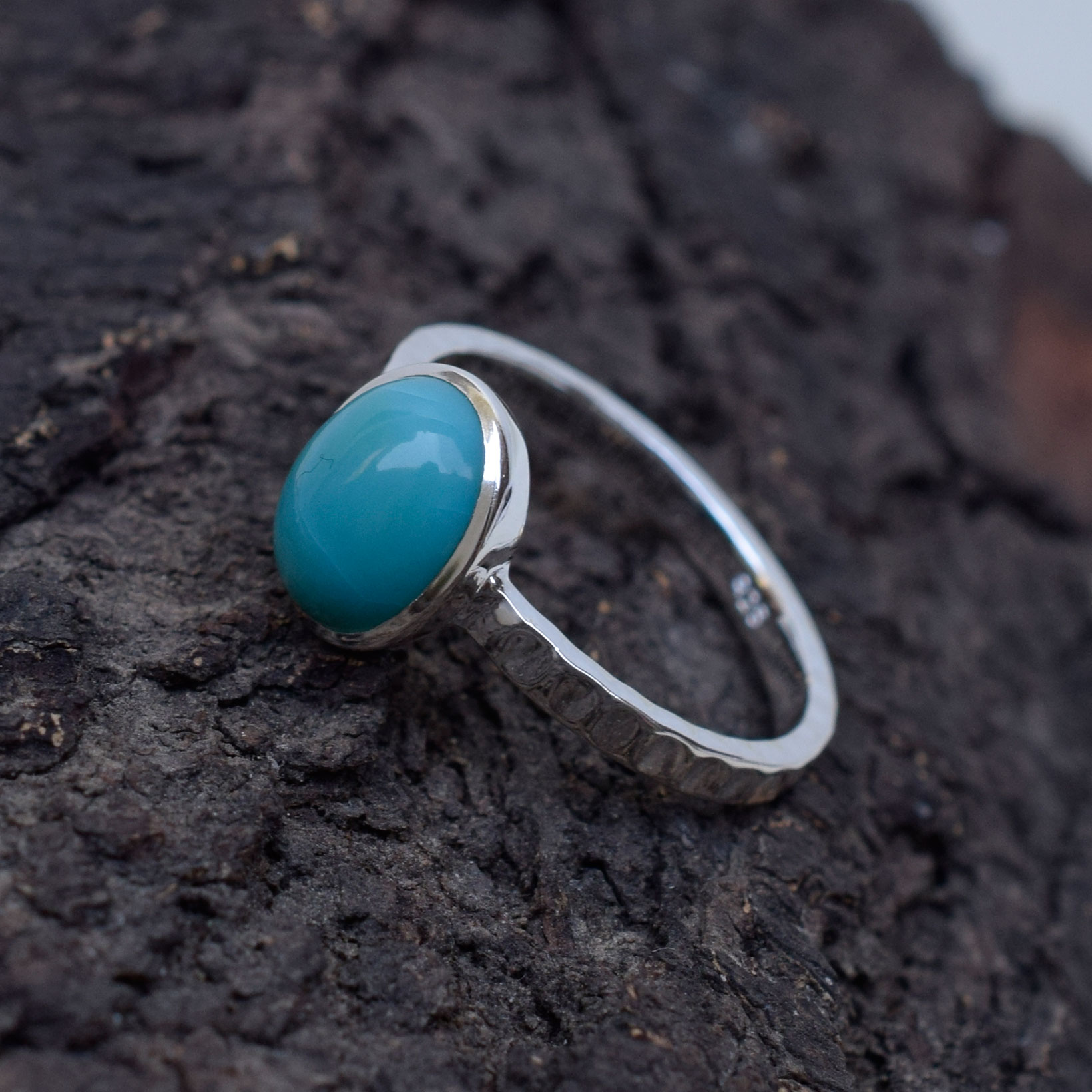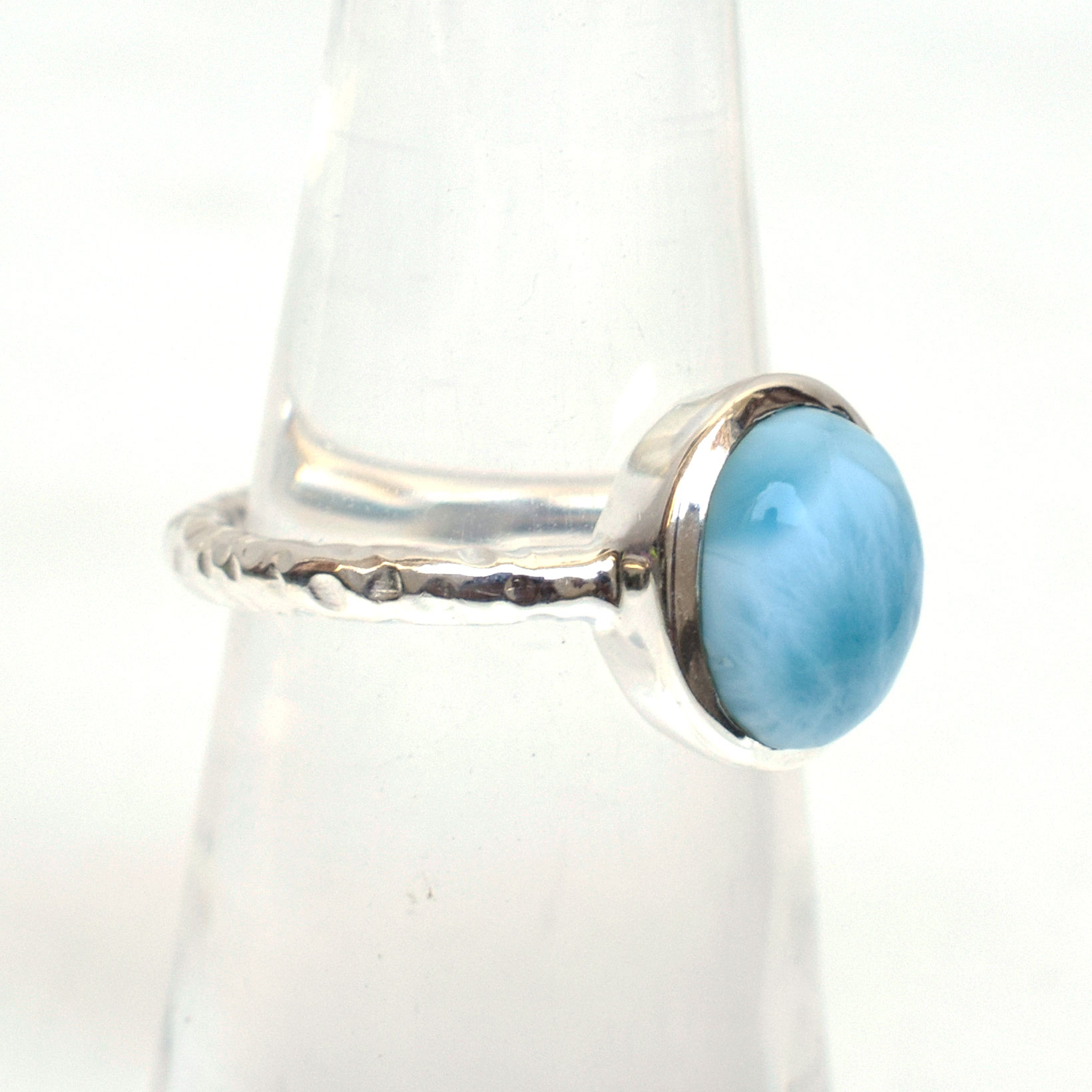 Natural Larimar Ring 925 Sterling Silver Hammered Silver Ring Stack Ring-SR432