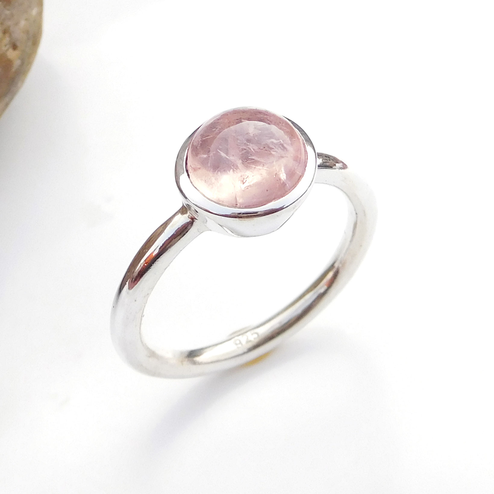 Natural Morganite Riing Pink Morganite Ring 925 Sterling Silver Stack Ring-SR434