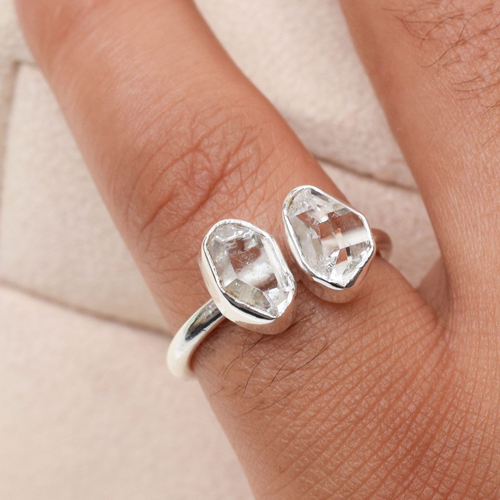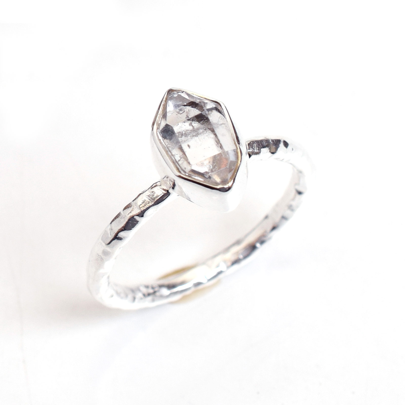 Natural Herkimer Diamond Ring 925 Sterling Silver Diamond Crystal Ring-SR426