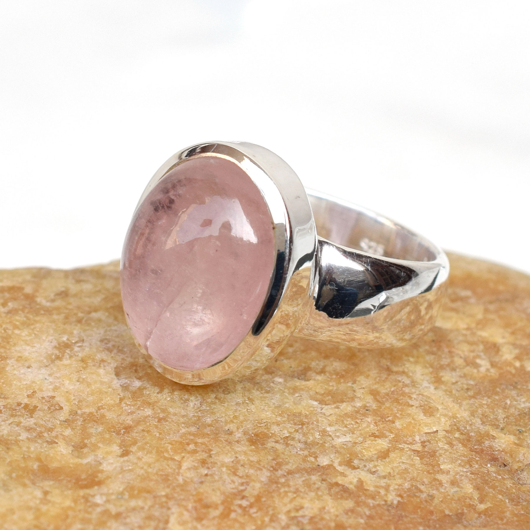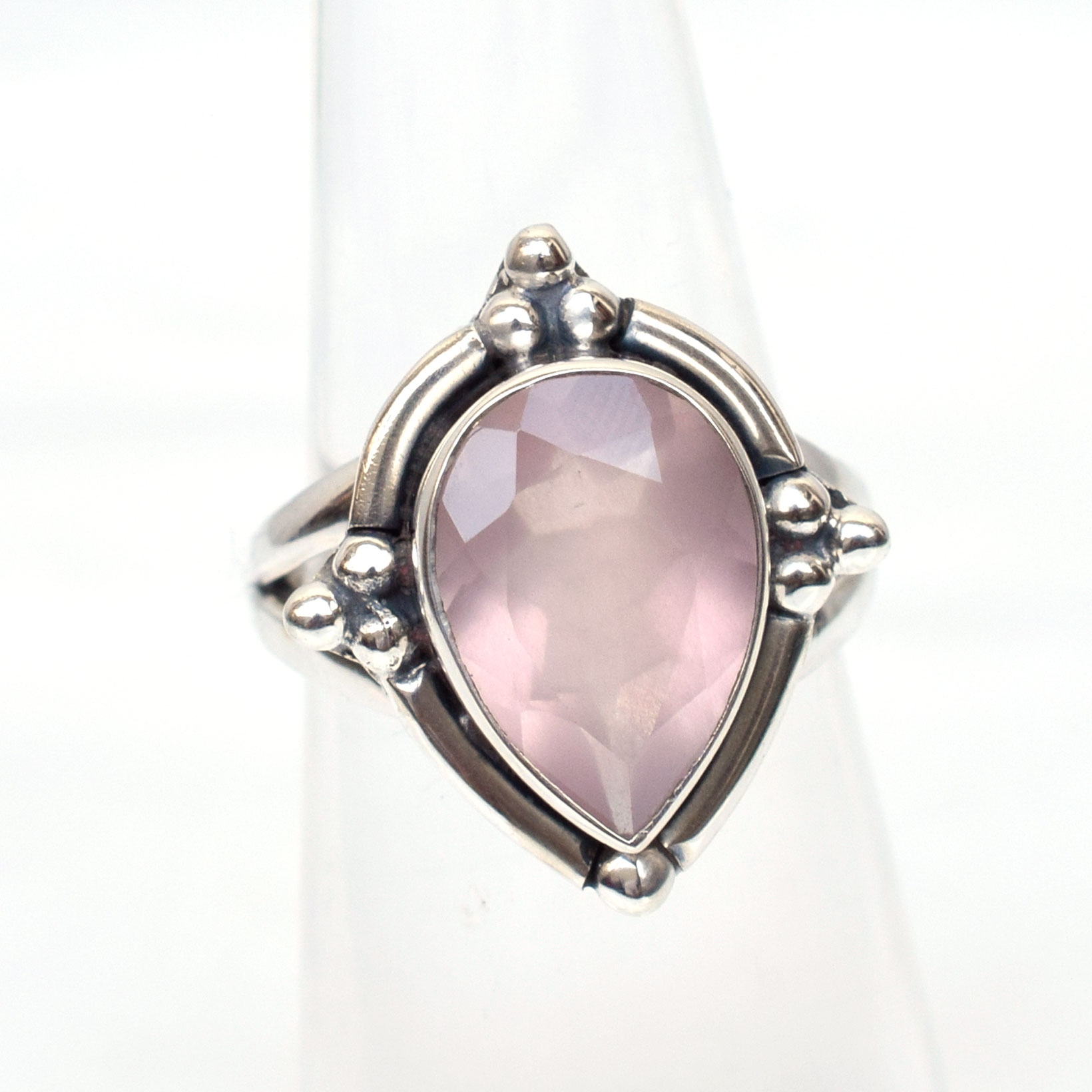 Natural Rose quartz Ring Pear drop Ring 925 Sterling Silver Handmade-SR430