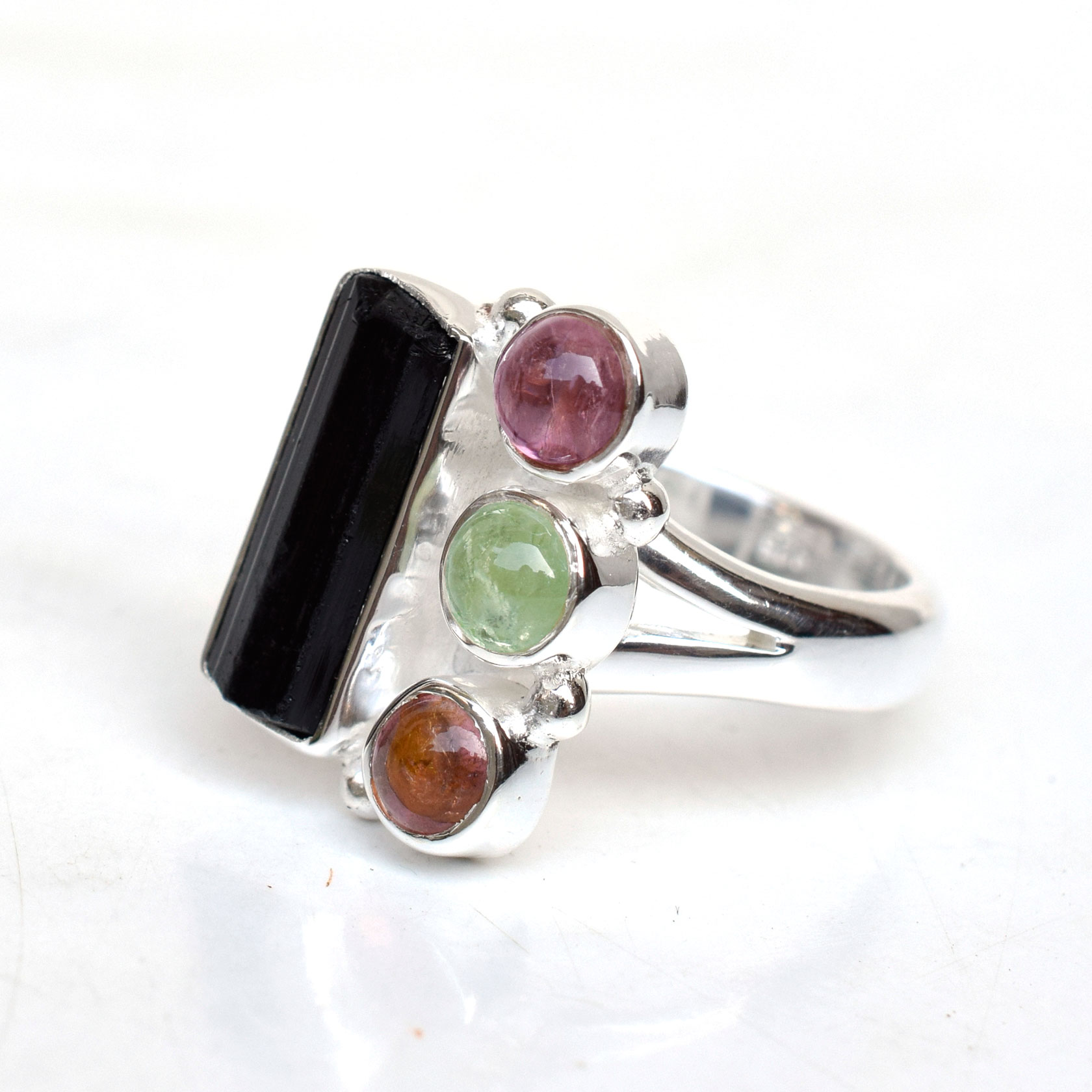 Natural Multi Tourmaline Ring 925 Sterling Silver Tourmaline Ring Handmade-SR357