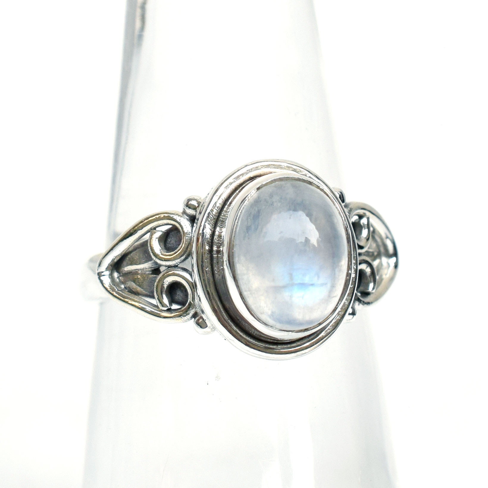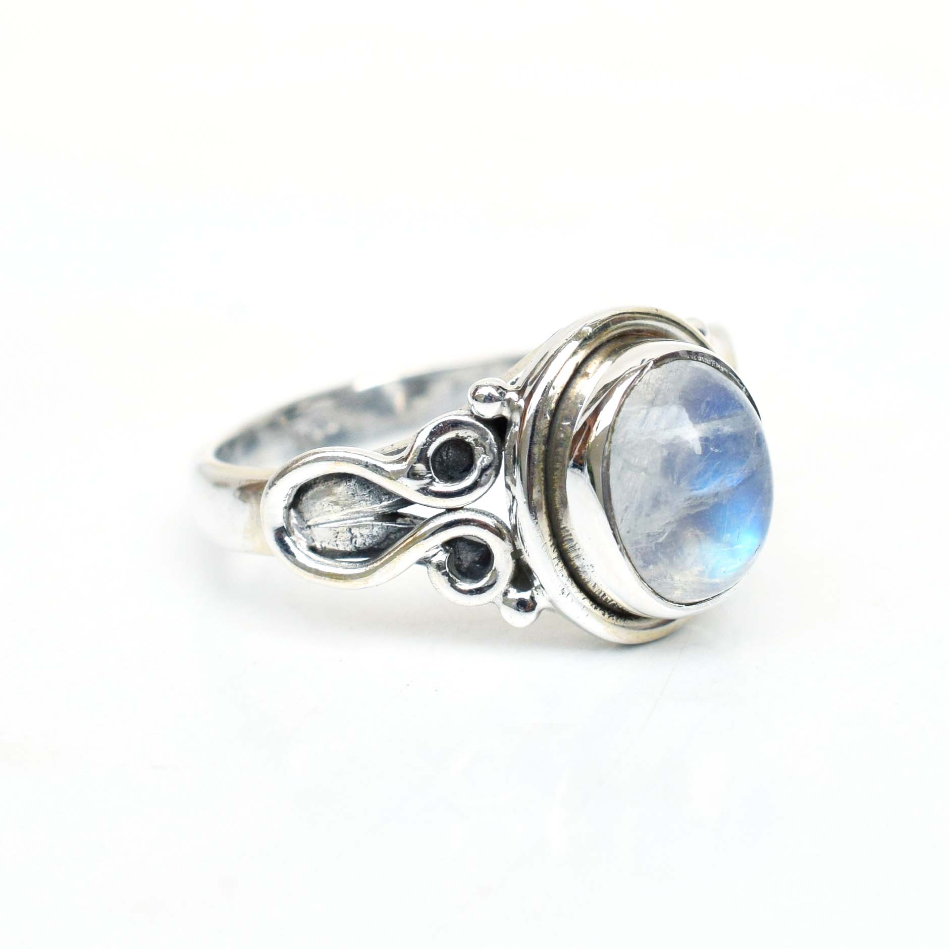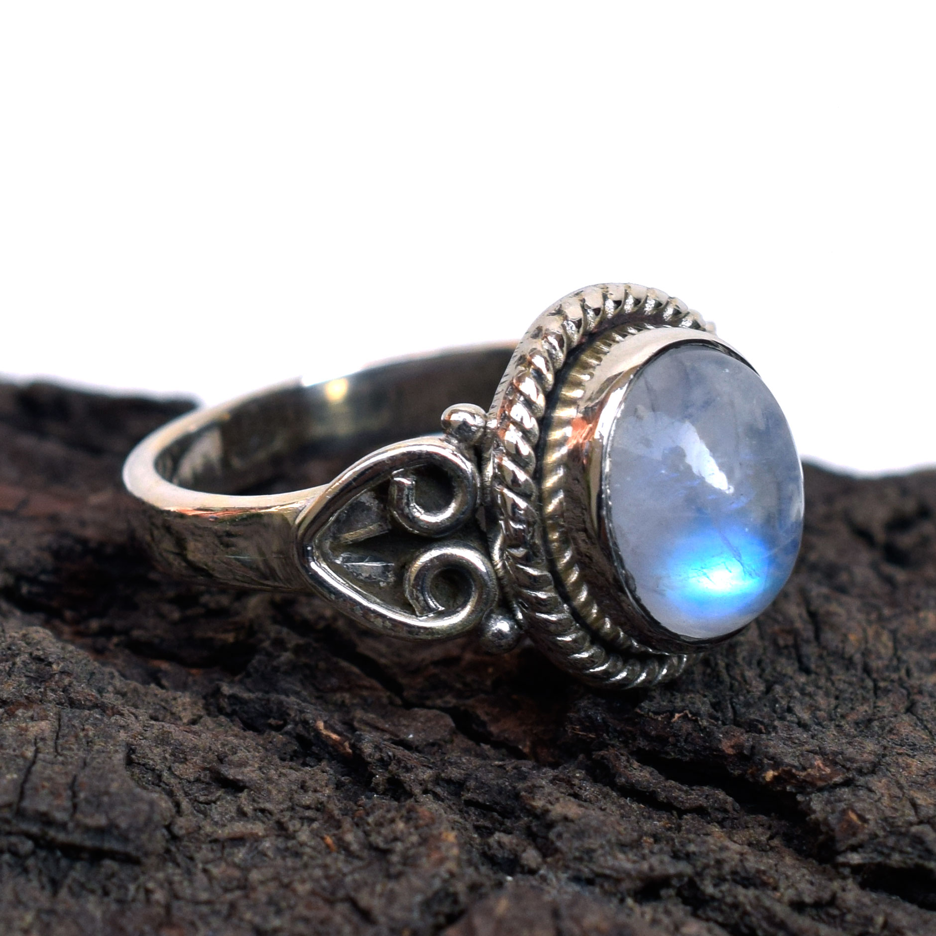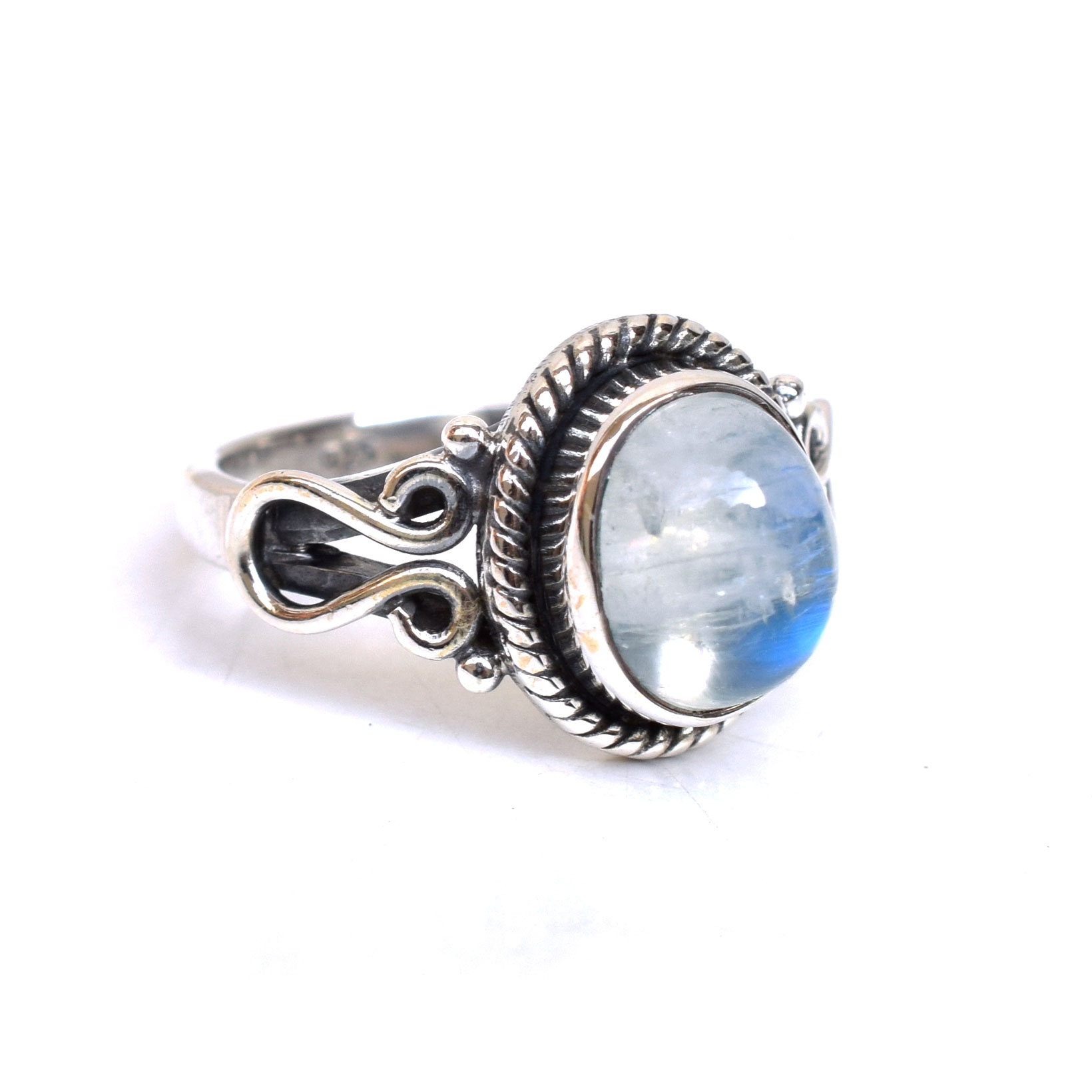 925 Sterling Silver Moonstone Ring Natural Rainbow moonstone Rings-SR455