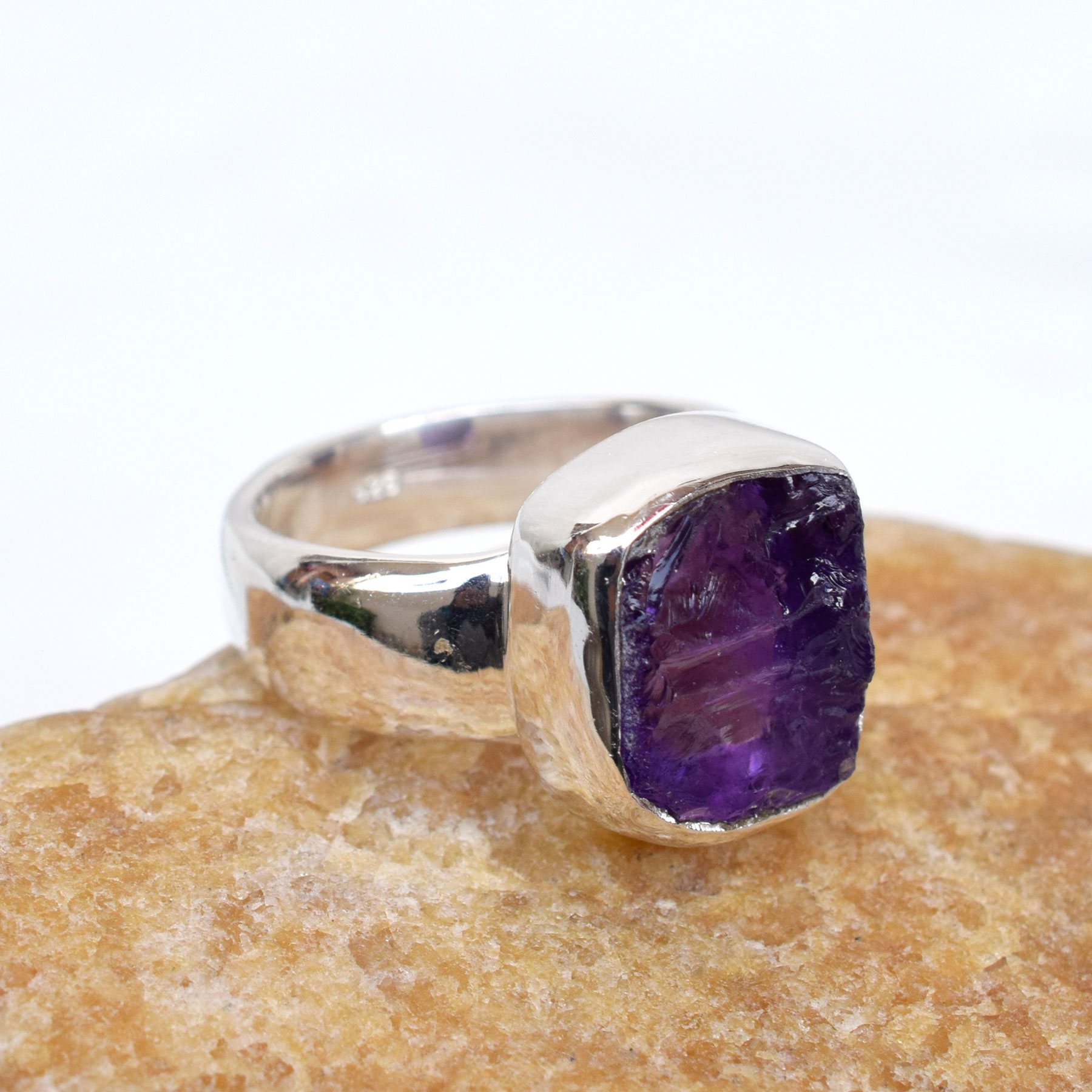 Natural Raw Amethyst Ring 925 Sterling Silver Purple Amethyst Crystal Ring-SR448