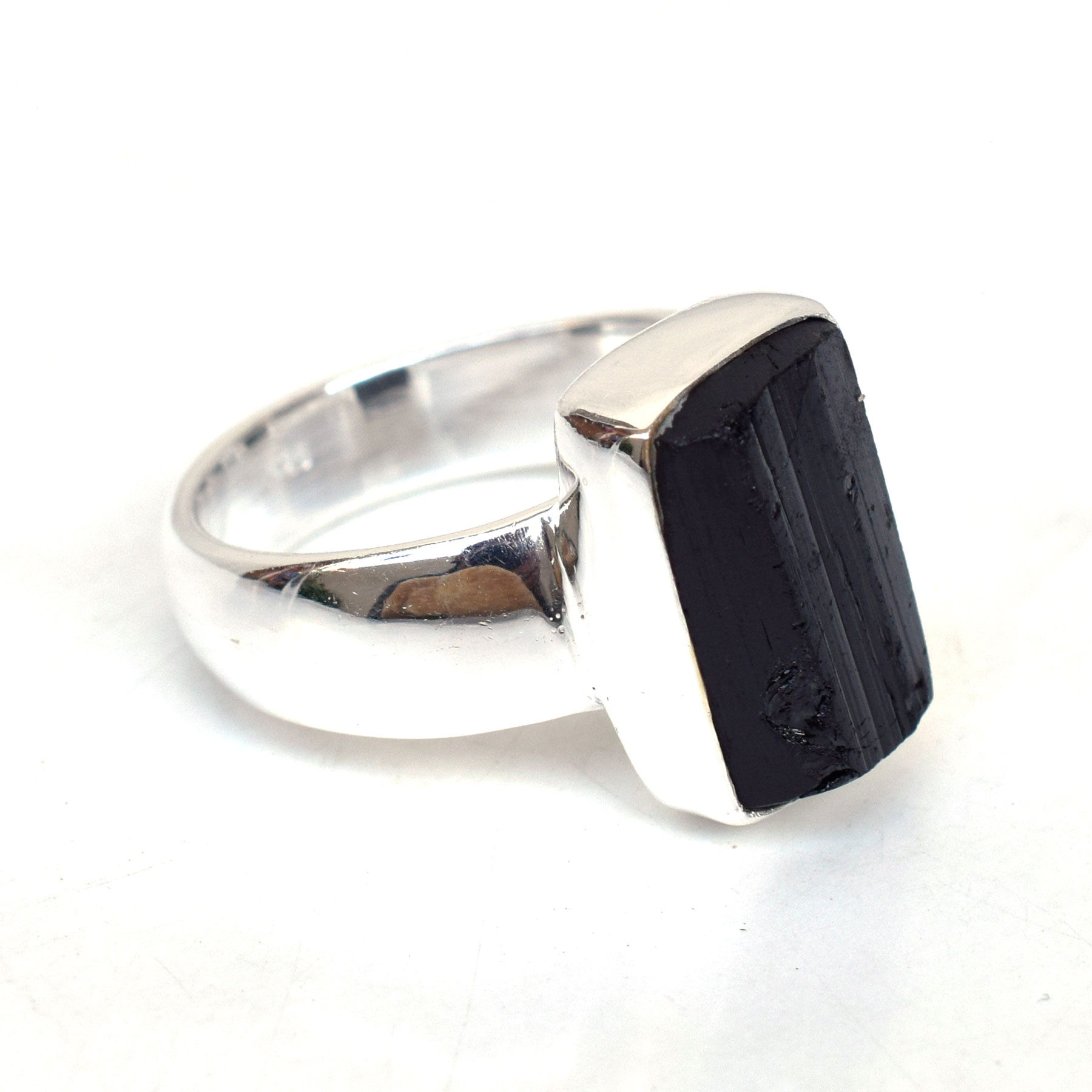 Natural Raw Black Tourmaline Ring 925 Sterling Silver Raw Tourmaline Ring-SR451