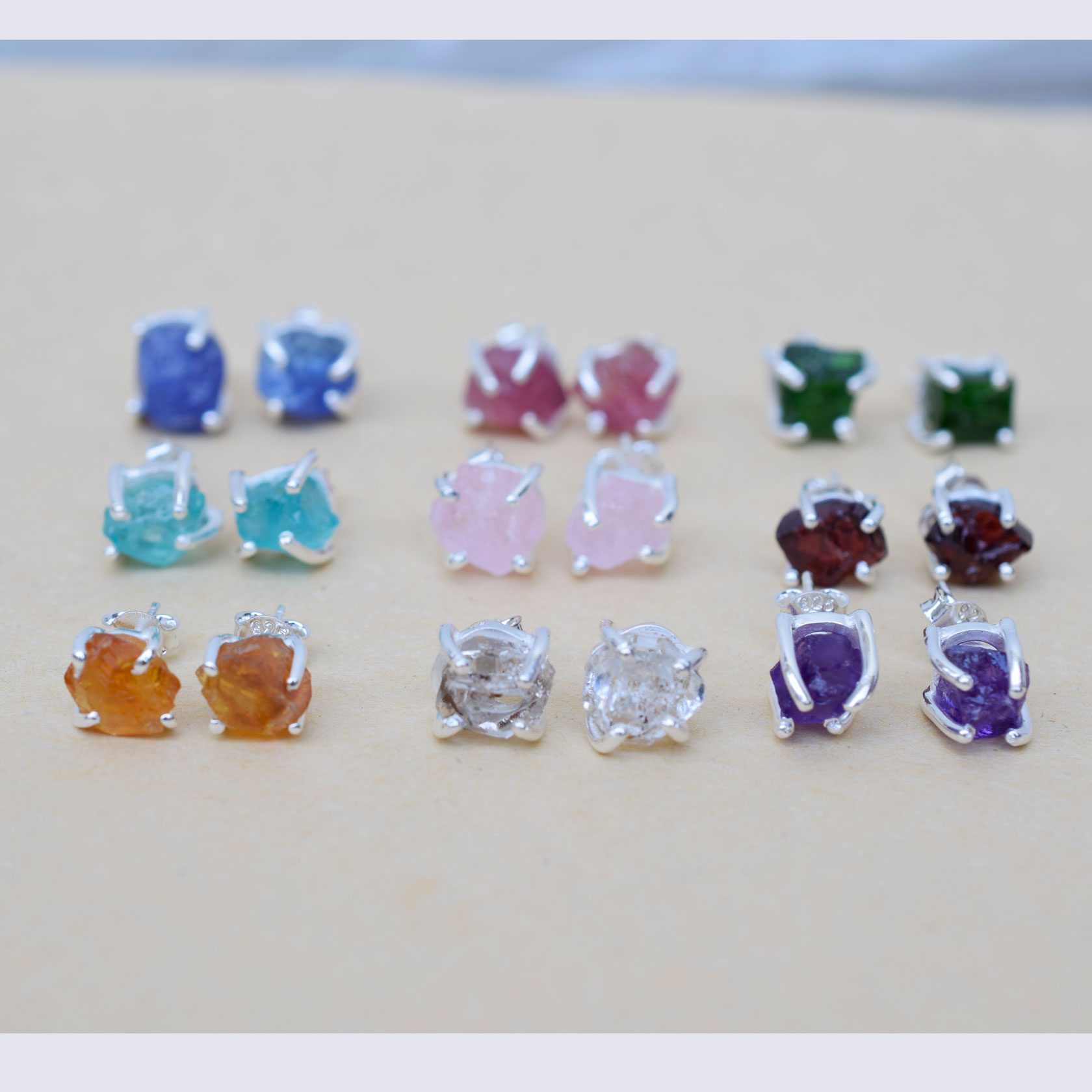 Natural Multi Raw gemstone Stud Post Earring 925 Sterling Silver Stud Post-WE02